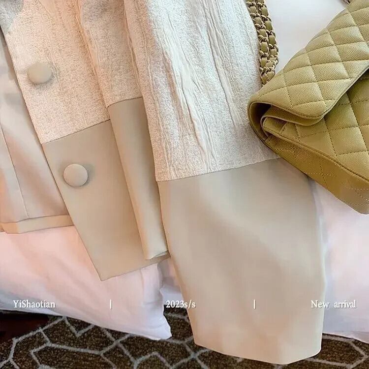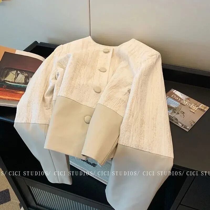 Nomikuma PU パッチワークショートコート春秋 2024 スタイルカーディガンジャケットトップス スプリング 春物 オータム 秋物