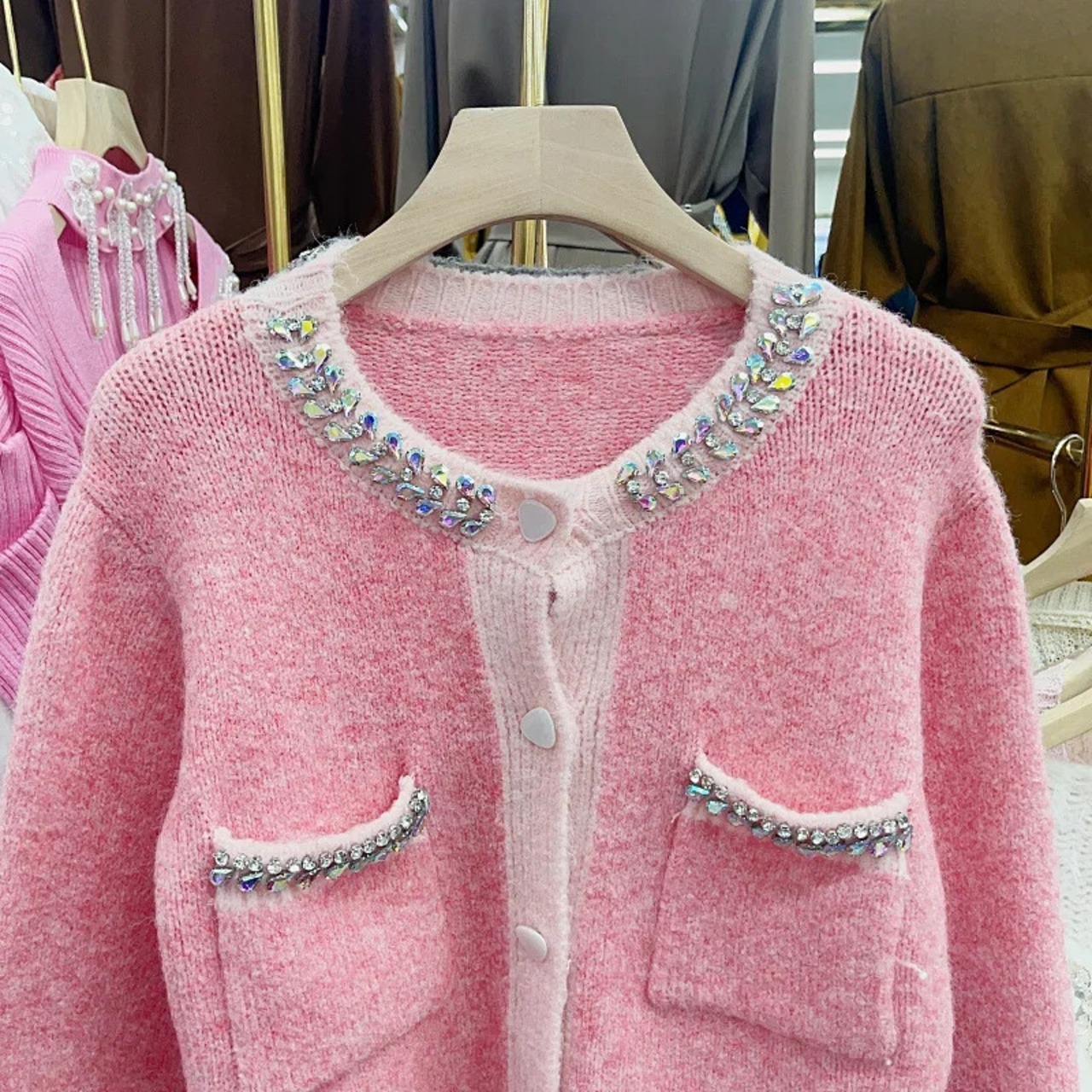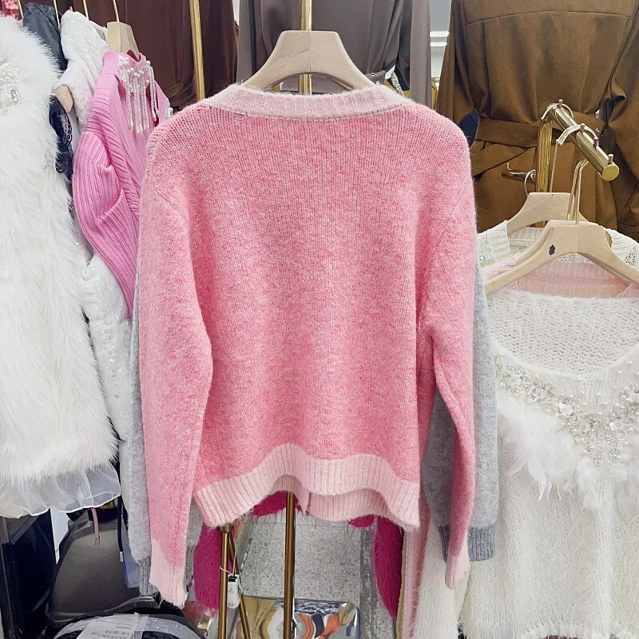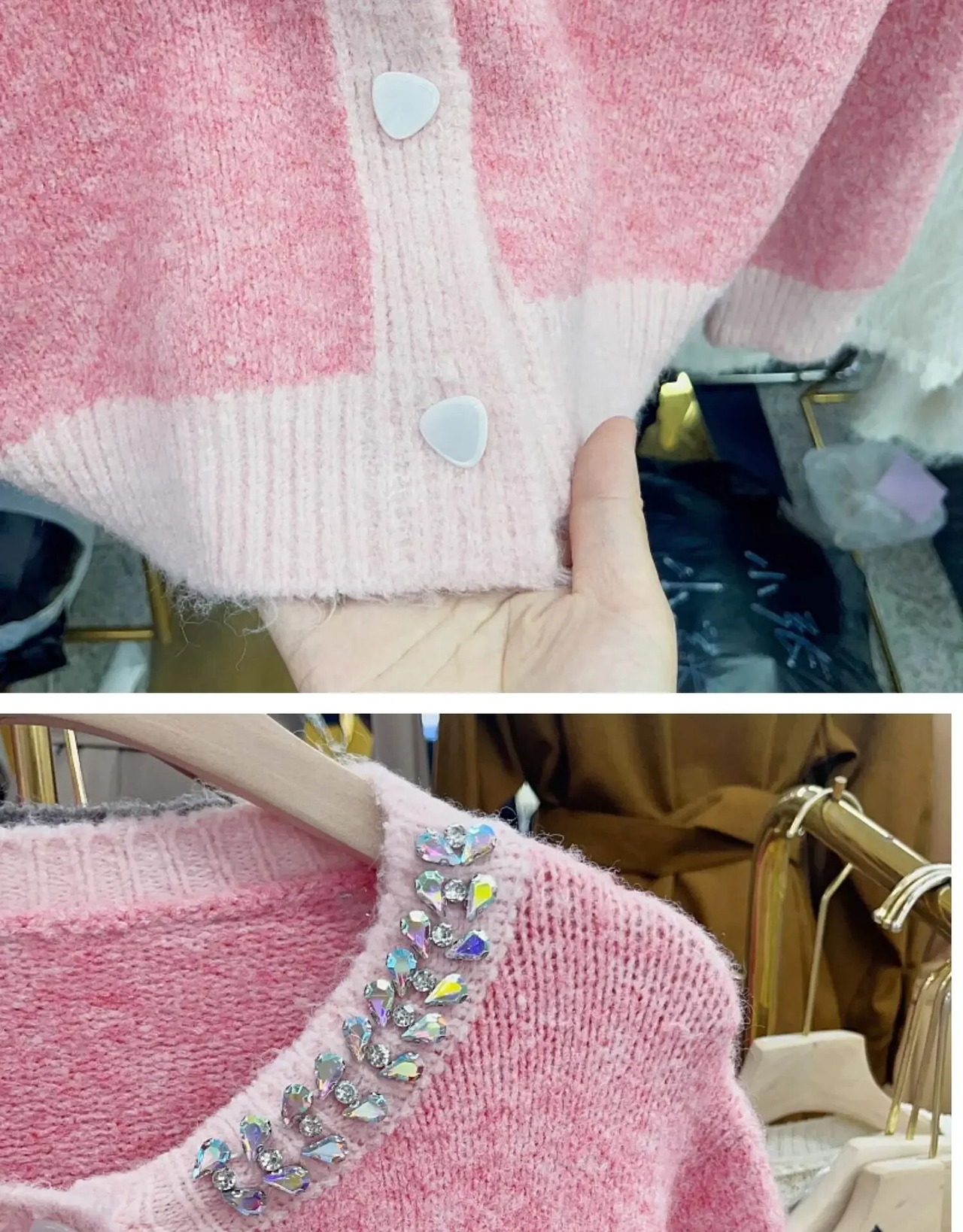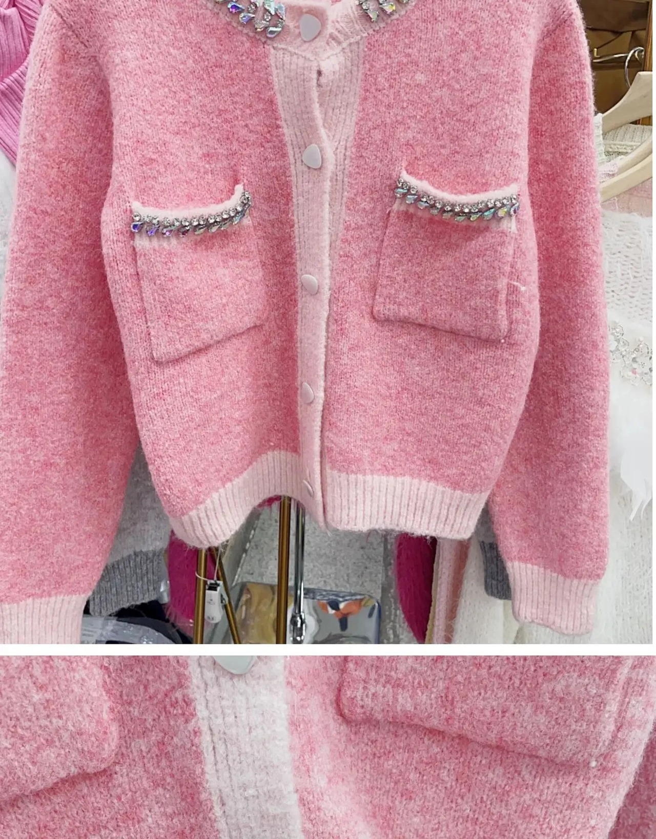 Nomikuma カラーブロッキング レディース ニット 秋冬 痩身 ウエスト ショートカット ダイヤモンド ラウンドネック カーディガン セーター オータム 秋物 ウィンター 冬物 Oネック