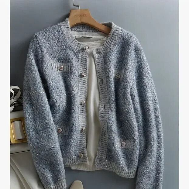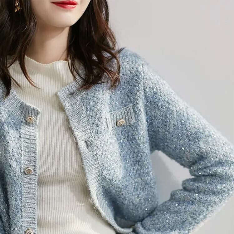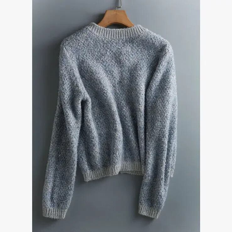 Nomikuma スパンコールセーターカーディガン因果長袖 O ネックニットヒットカラーニットジャケット ロング Oネック