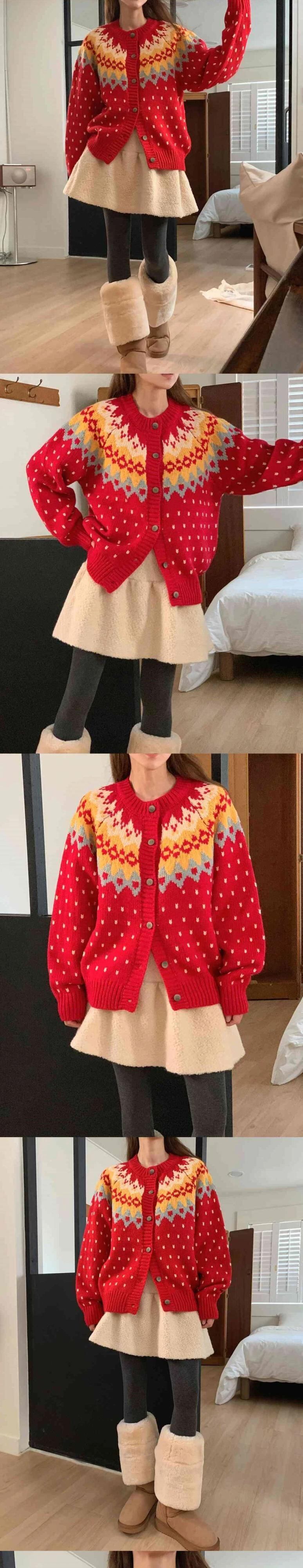 Nomikuma 秋冬ラウンドネックジャカード多用途長袖ニットセーターコート ロング オータム 秋物 ウィンター 冬物 Oネック