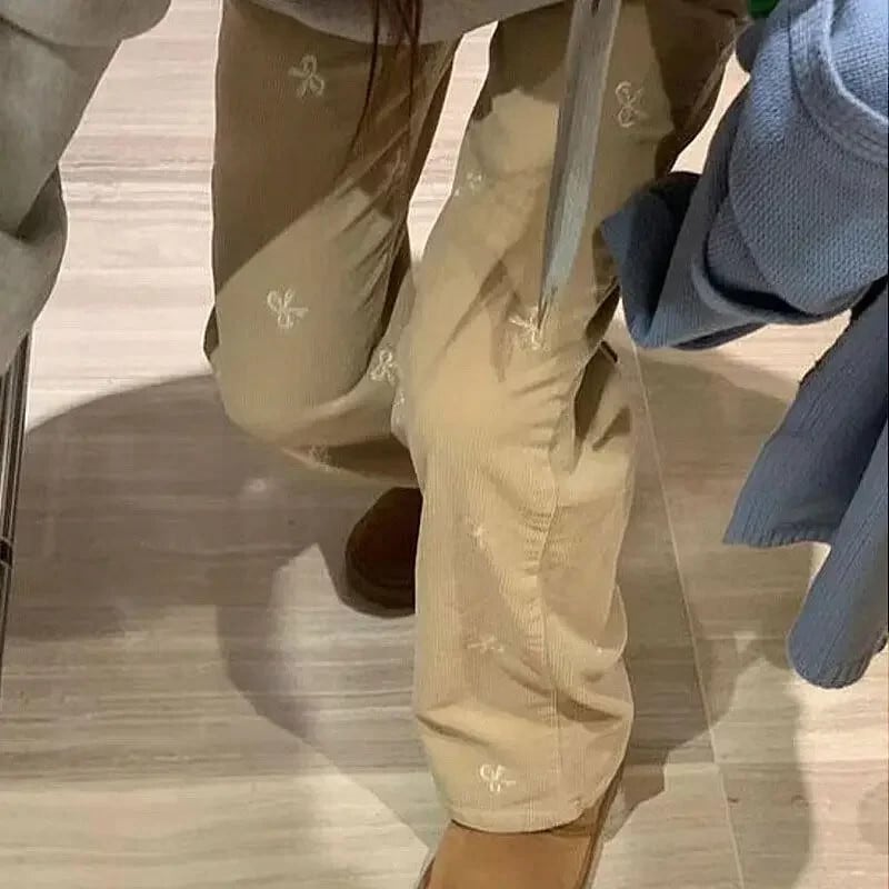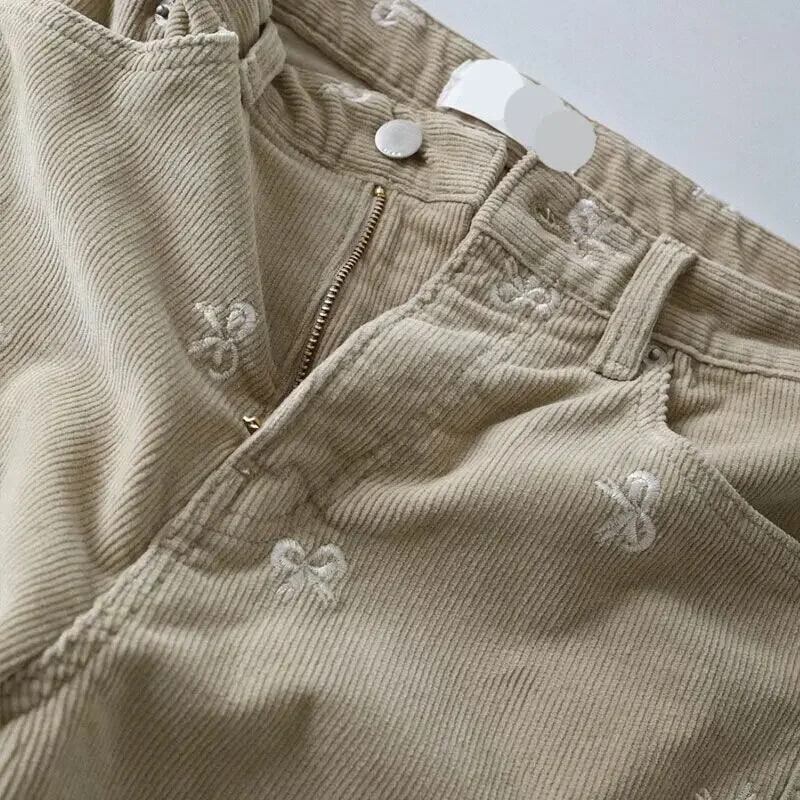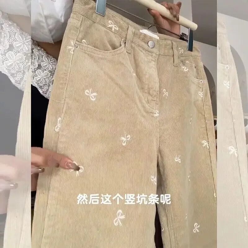 Nomikuma インスタイル弓刺繍因果コーデュロイ因果ロングパンツ 2024 春秋ストレートズボン リボン スプリング 春物 オータム 秋物