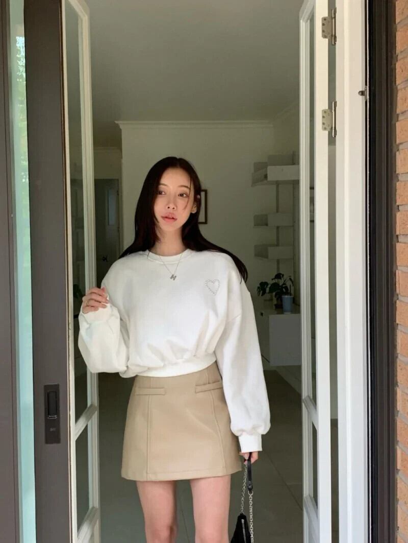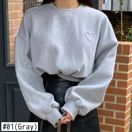 Nomikuma シック秋/冬レトロラウンドネック 3D ビーズラブハート多用途ショート長袖パーカートレーナー ロング オータム 秋物 ウィンター 冬物 Oネック