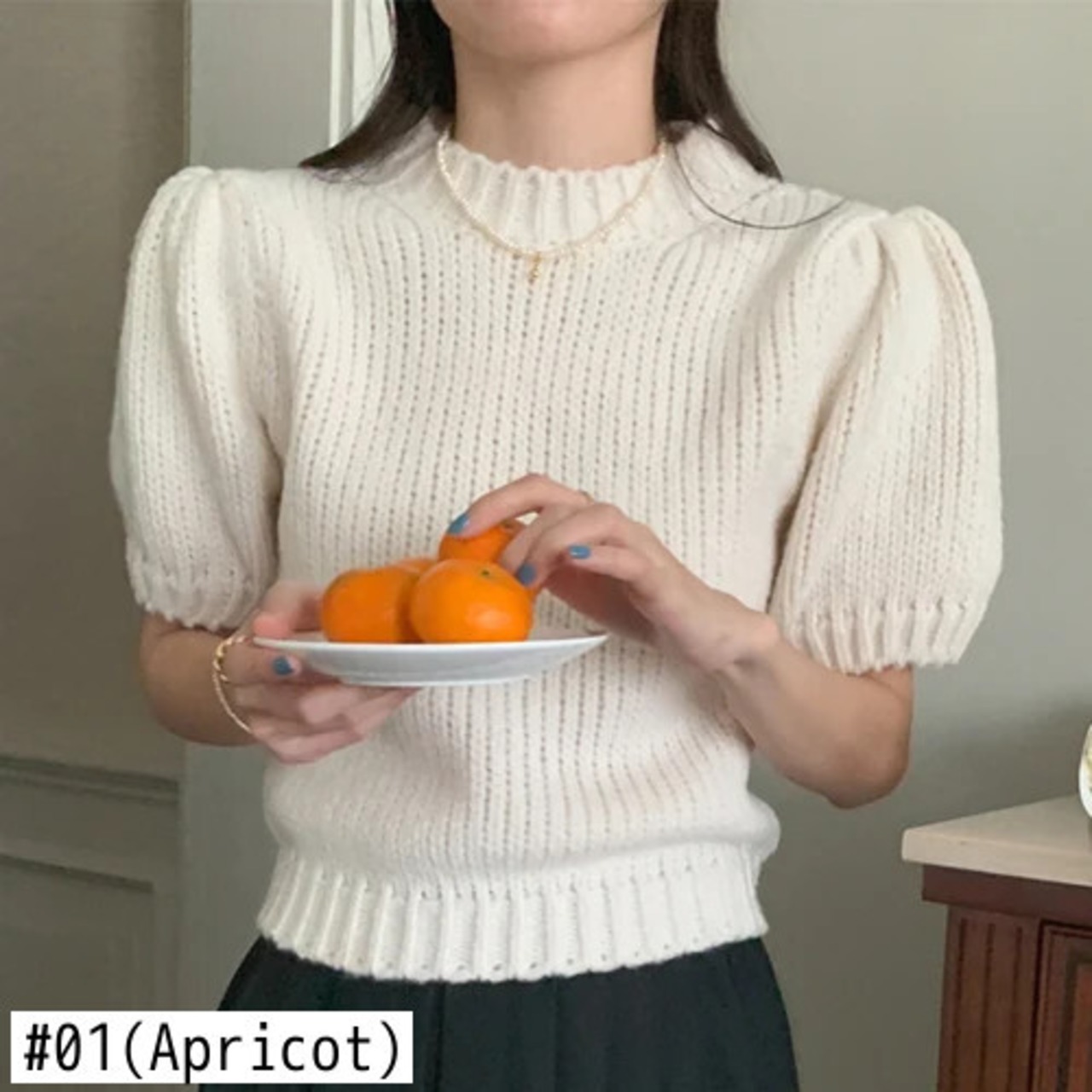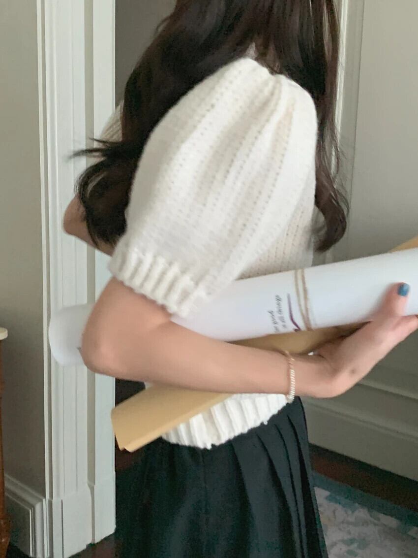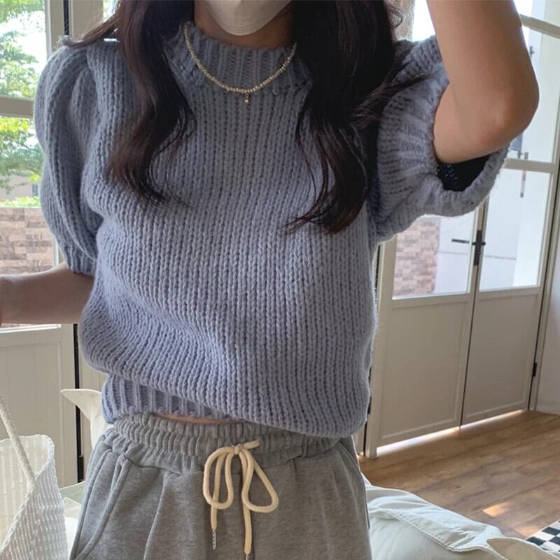 Nomikuma シック春 O ネック因果パフスリーブショートニットトップス 2024 プルオーバースリムニットセーター スプリング 春物 Oネック ソリッドカラー