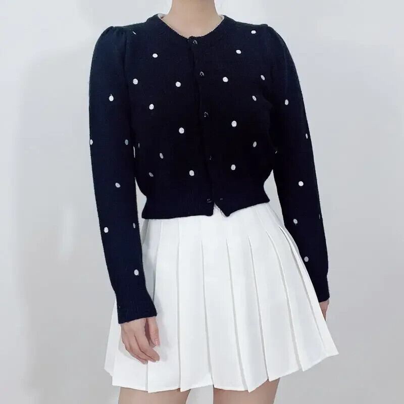 Nomikuma 刺繍ドットプリントニットセーター 2024 カーディガンフレンチスイートショートニットコート 大人ガーリー スウィート キュート カジュアル