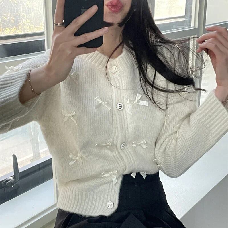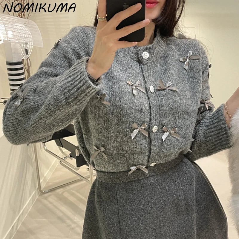 Nomikuma シック冬 O ネックちょう結びニットジャケット因果ニットカーディガンセーターコート リボン ウィンター 冬物 Oネック