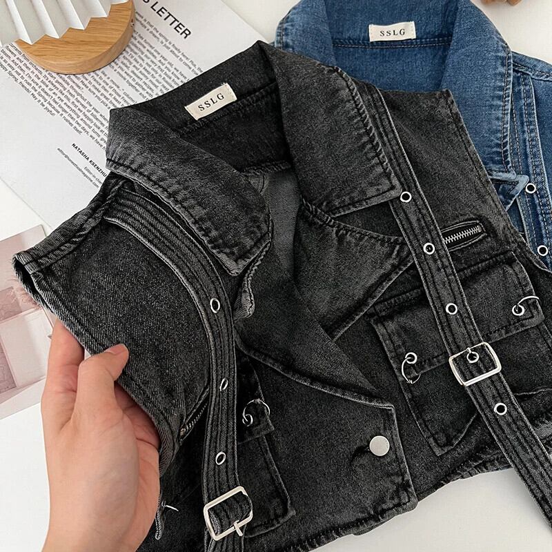 Nomikuma スーツ襟ダブルポケット Enim ノースリーブチョッキ因果ショートジャケットトップベスト生き抜く