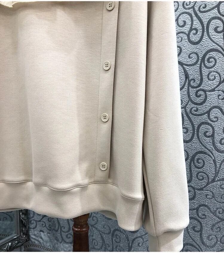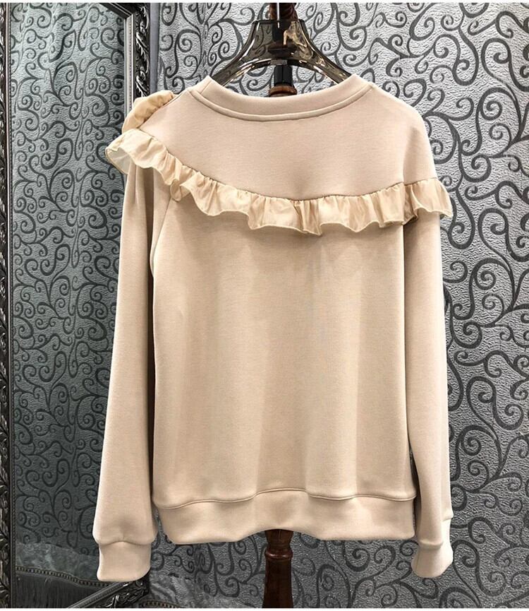 Nomikuma フレンチ 3D フラワーパッチワークフリルエッジラウンドネックパーカー春 2024 ニッチトレーナートップ スプリング 春物 Oネック フラワーデザイン