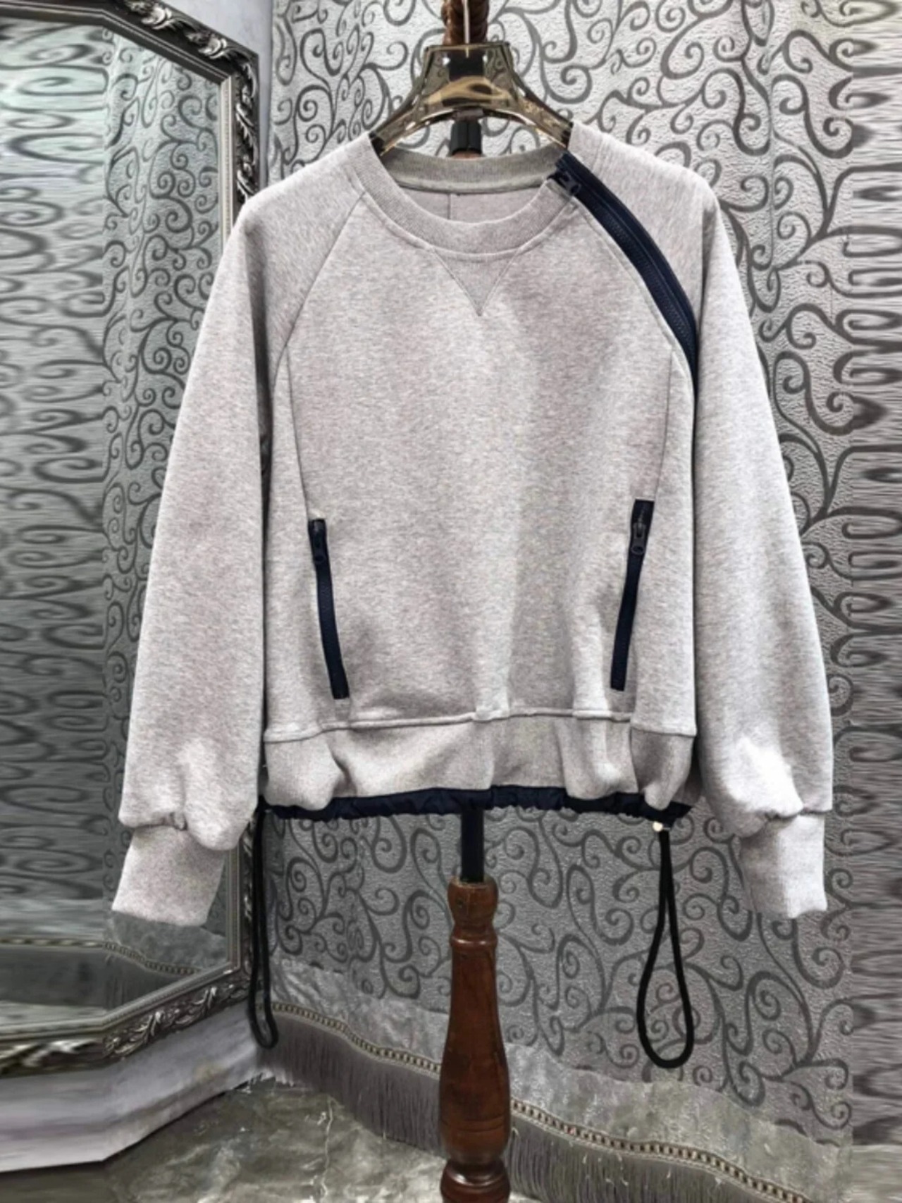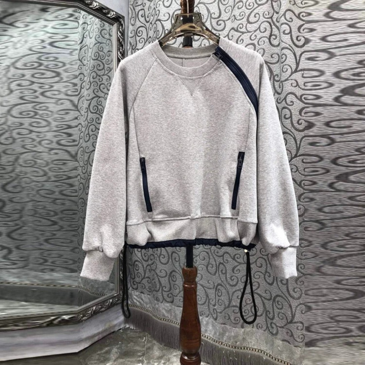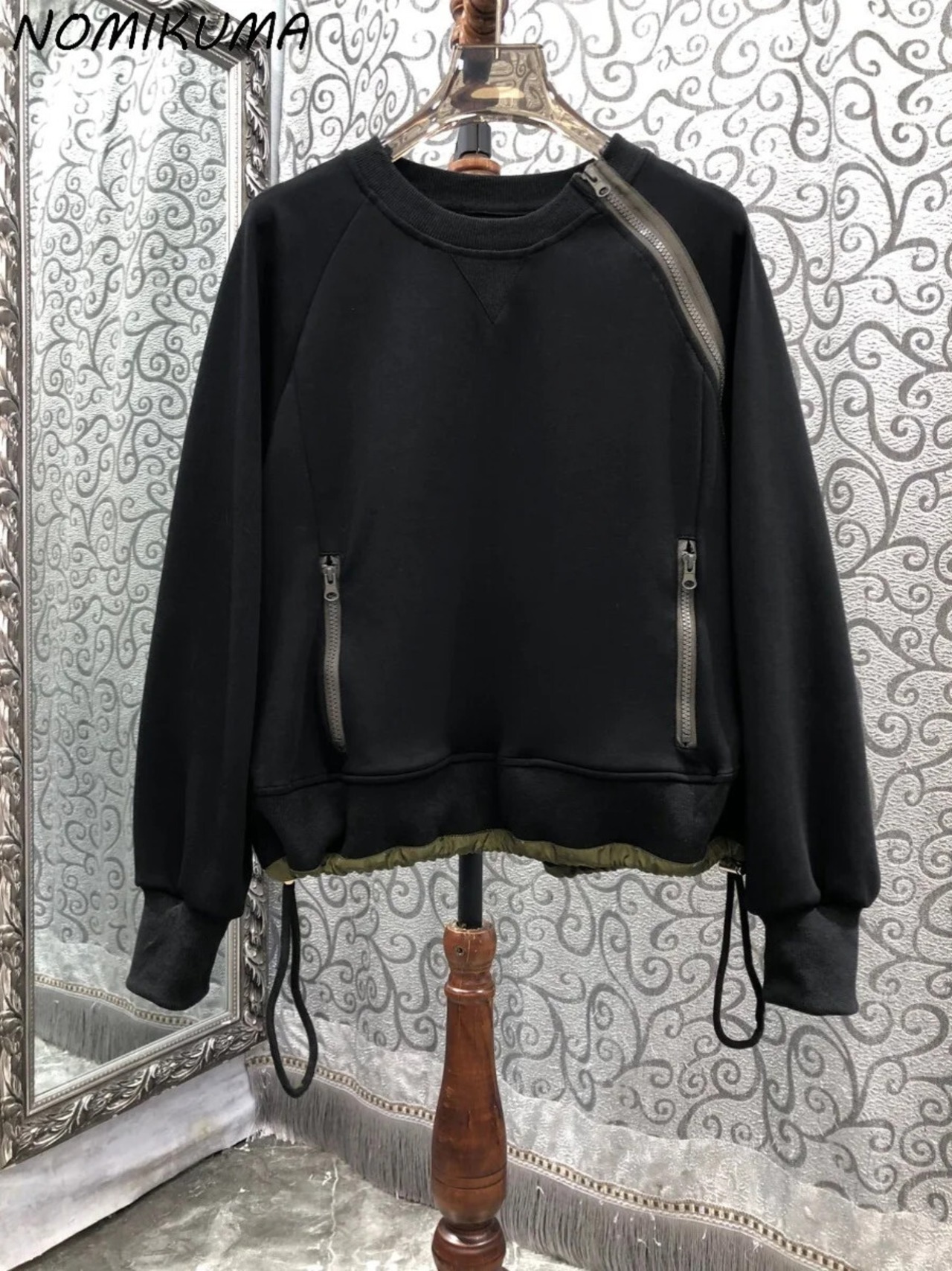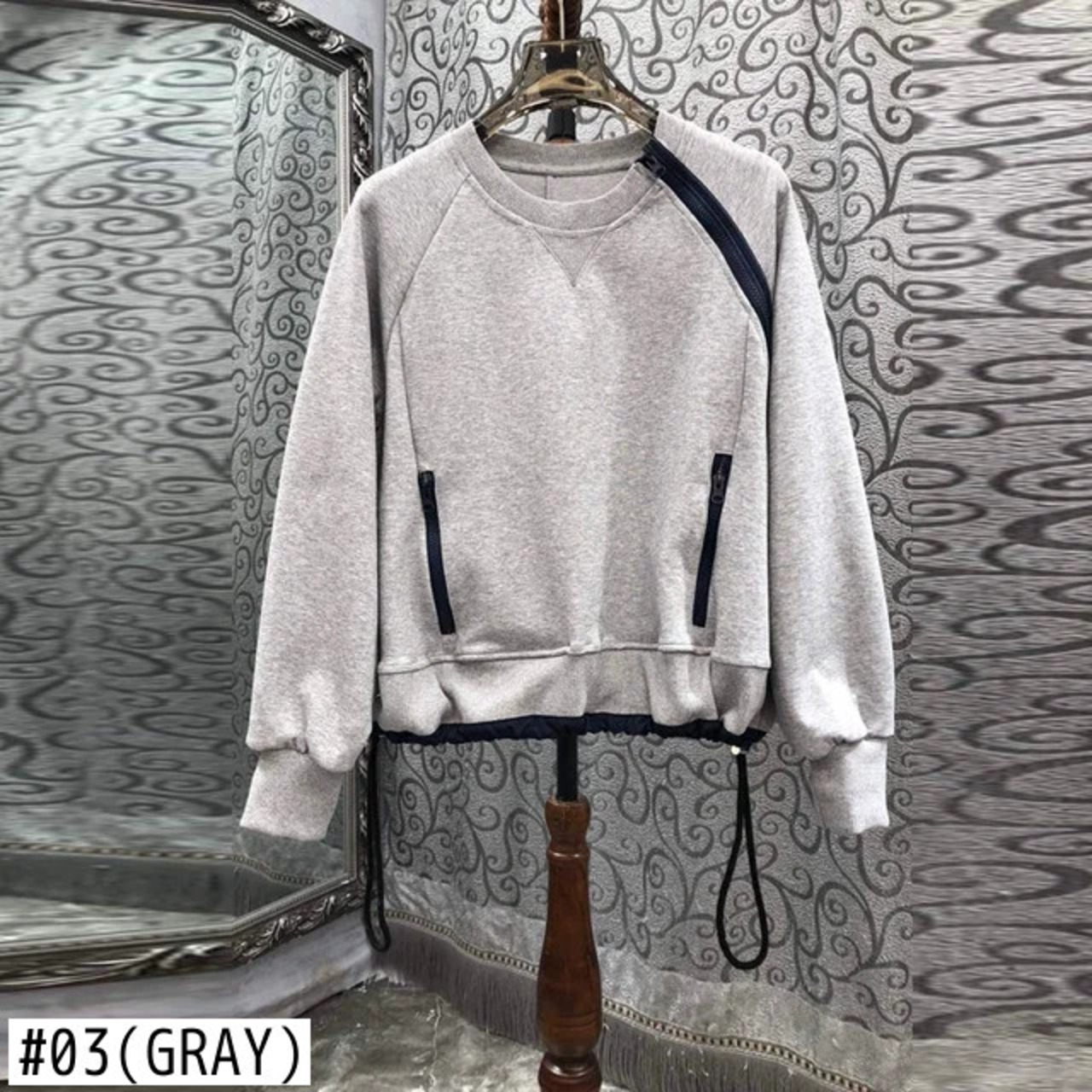Nomikuma フレンチラウンドネックサイドジッパー巾着パーカーレディース 2024 春秋トップトレーナー スプリング 春物 オータム 秋物 Oネック