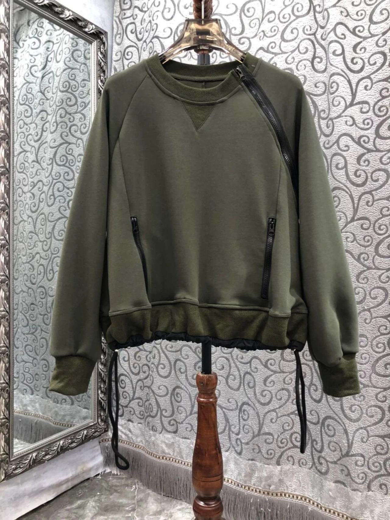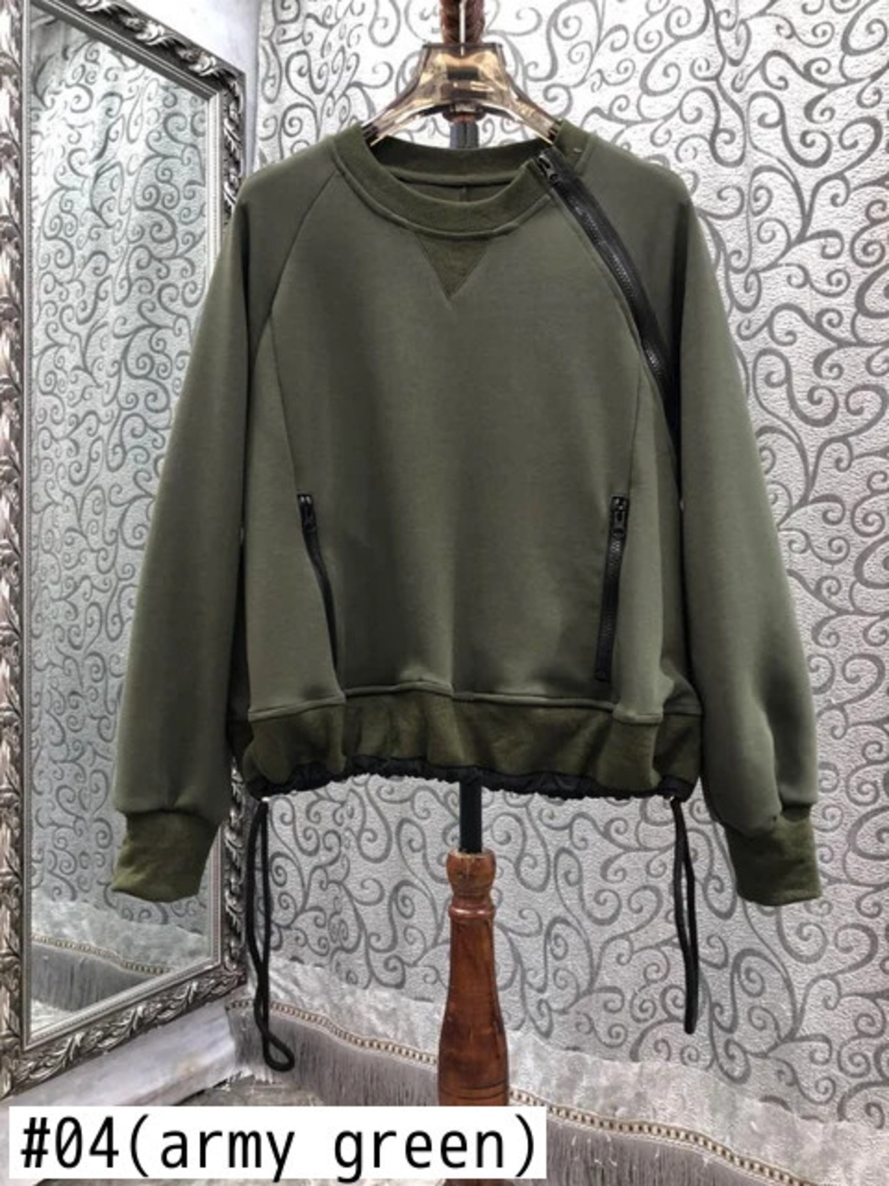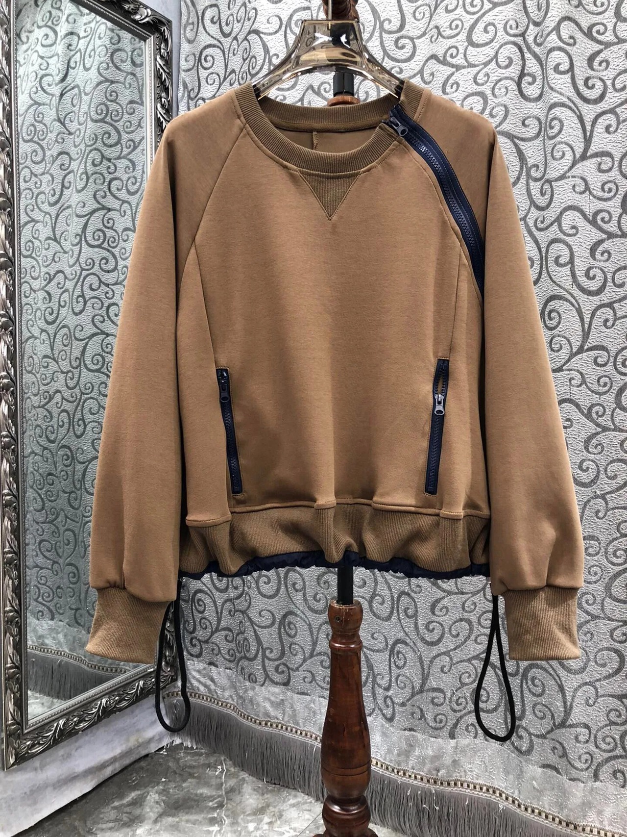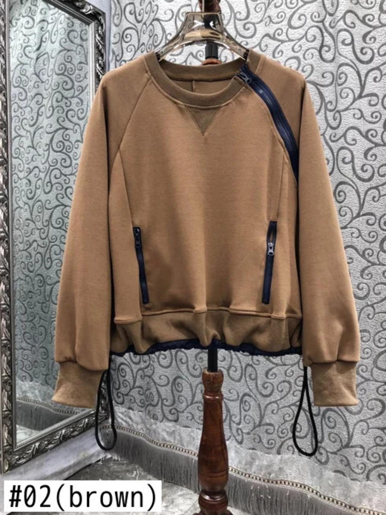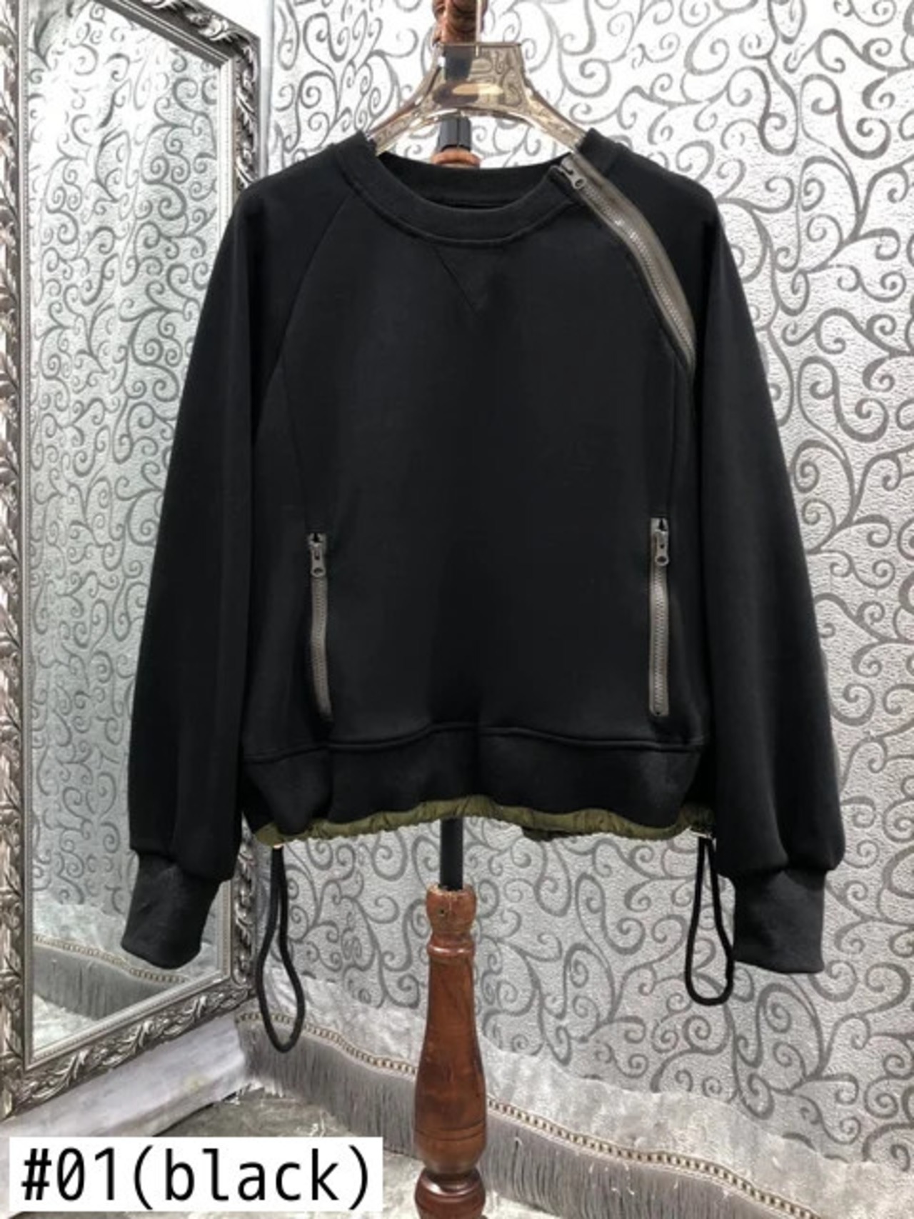 Nomikuma フレンチラウンドネックサイドジッパー巾着パーカーレディース 2024 春秋トップトレーナー スプリング 春物 オータム 秋物 Oネック