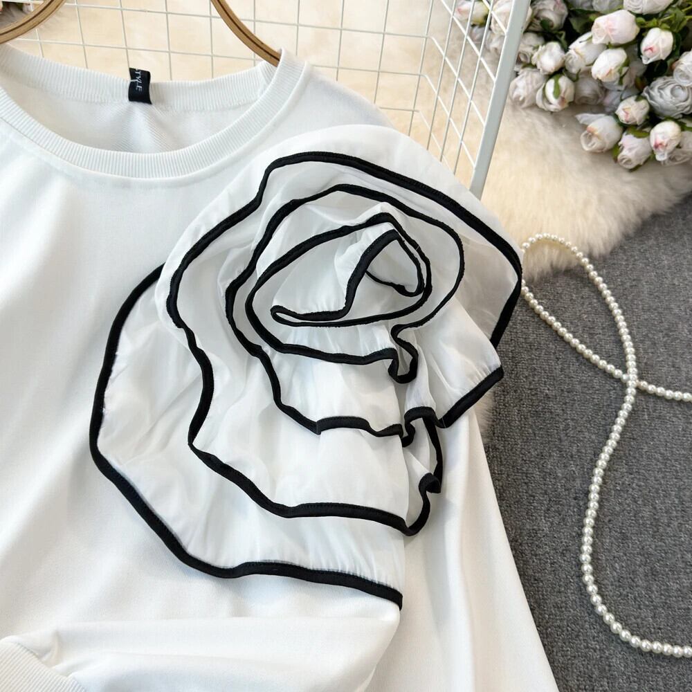 Nomikuma 2024 春秋メッシュスプライシング 3D フラワー長袖ラウンドネック因果スウェットシャツトップ ロング スプリング 春物 オータム 秋物 Oネック フラワーデザイン
