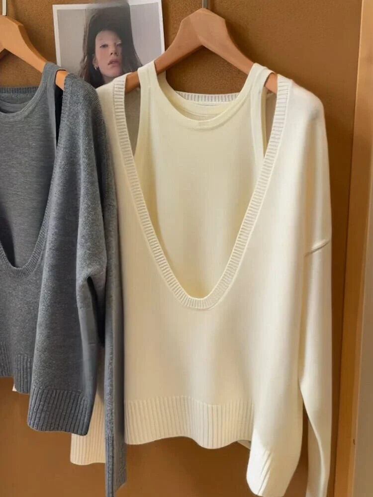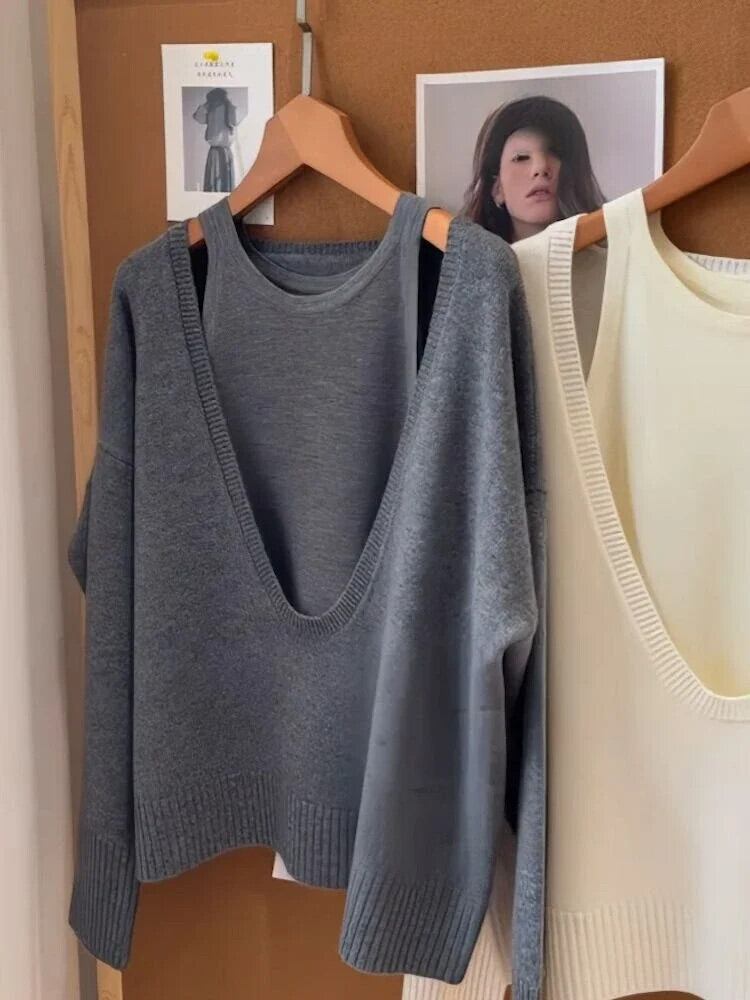 Nomikuma ラウンドネック プルオーバー ニット セーター 春 秋 2024 レディース 着痩せ 長袖 トップス 2点セット ロング スプリング 春物 オータム 秋物 Oネック