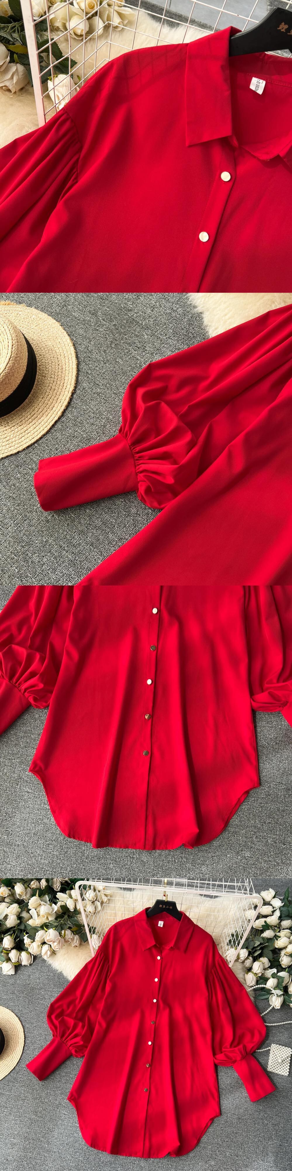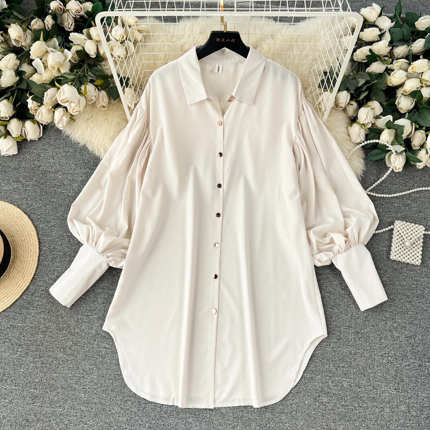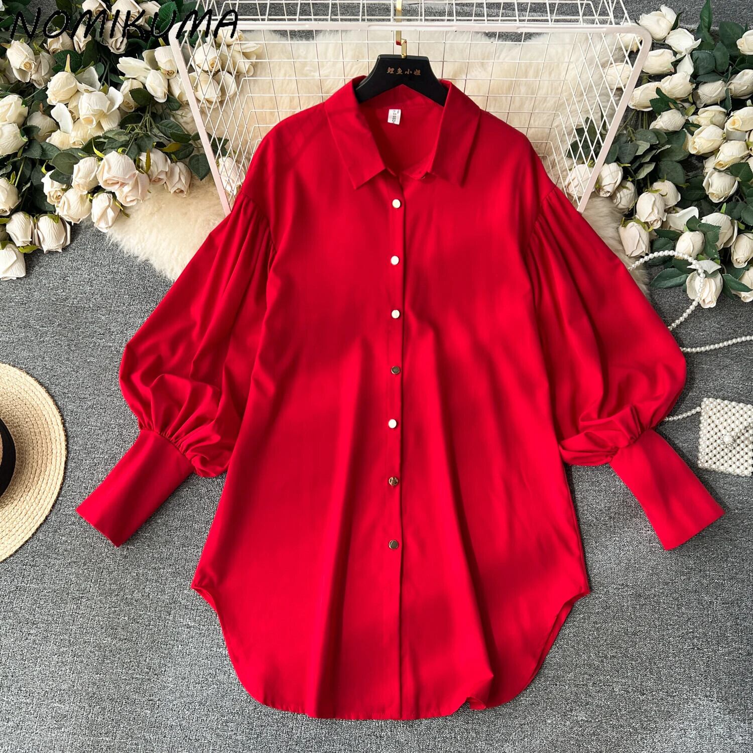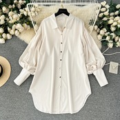 Nomikuma コーザル ランタン 長袖ドレス レディース 万能 ミドル丈 INS シャツドレス ロング