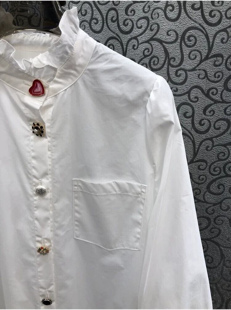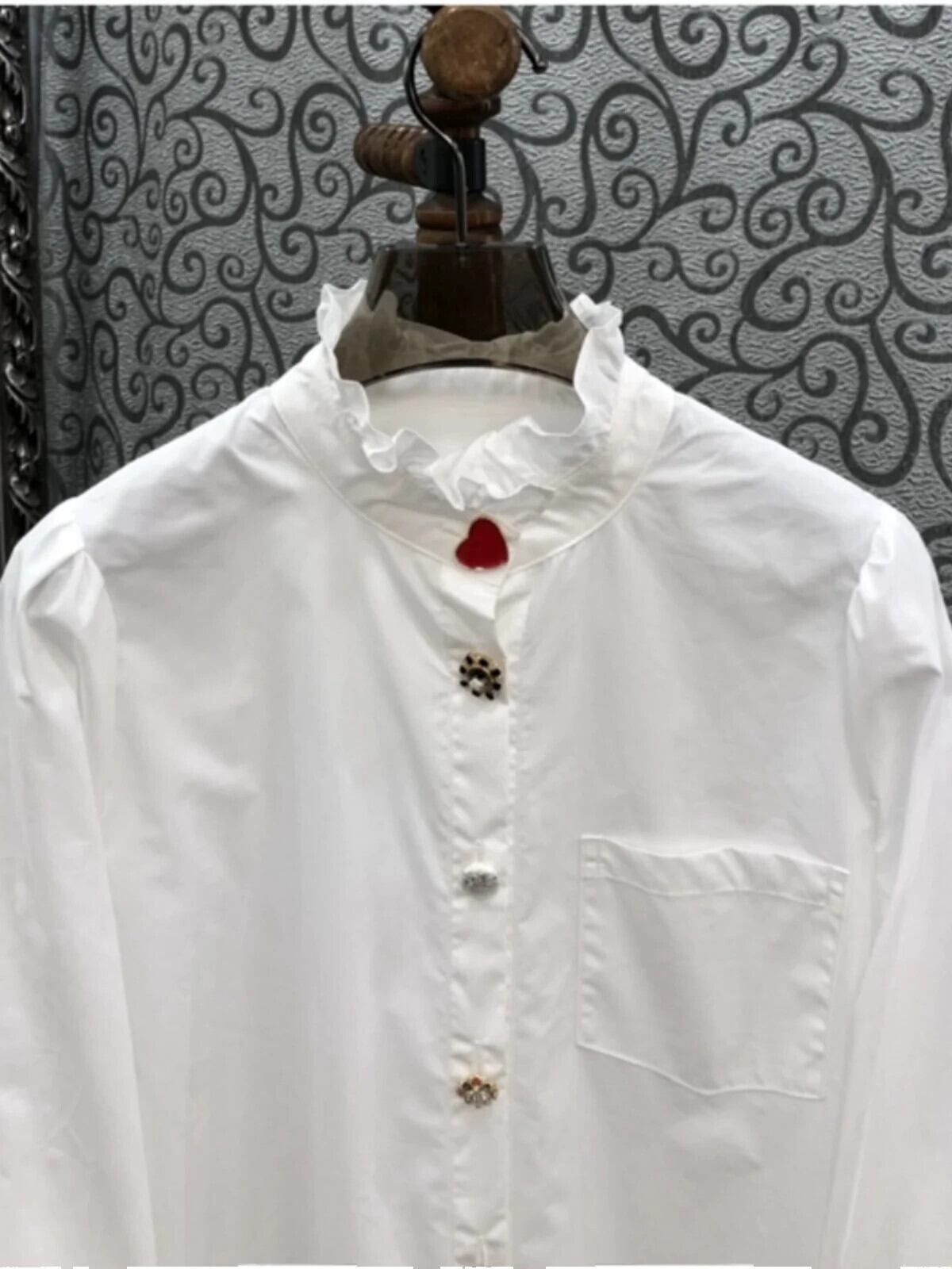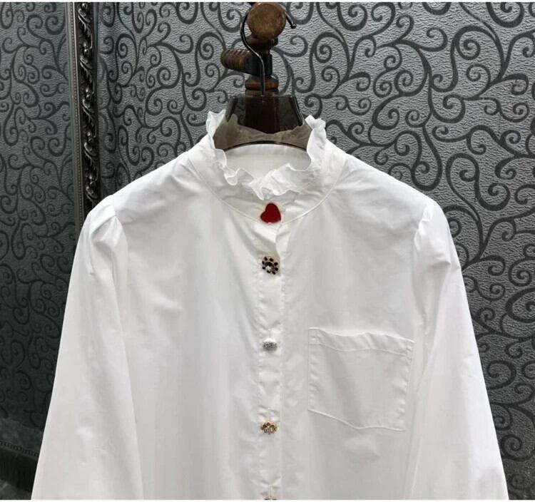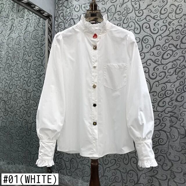 Nomikuma フレンチスタンドアップカラーフリルカラフルボタントップブラウス春 2024 ニッチシャツ スプリング 春物