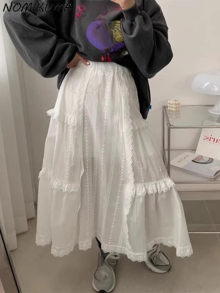 Nomikuma シック春スタイル万能ウエストスリムレースフックフラワー A ラインハーフスカート スプリング 春物 Aライン フラワーデザイン