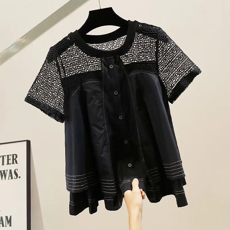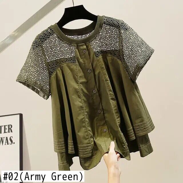 Nomikuma ダイヤモンド木製耳エッジパッチワークシングルブレストショートシャツ 2024 春夏ブラウストップス スプリング 春物 サマー 夏物