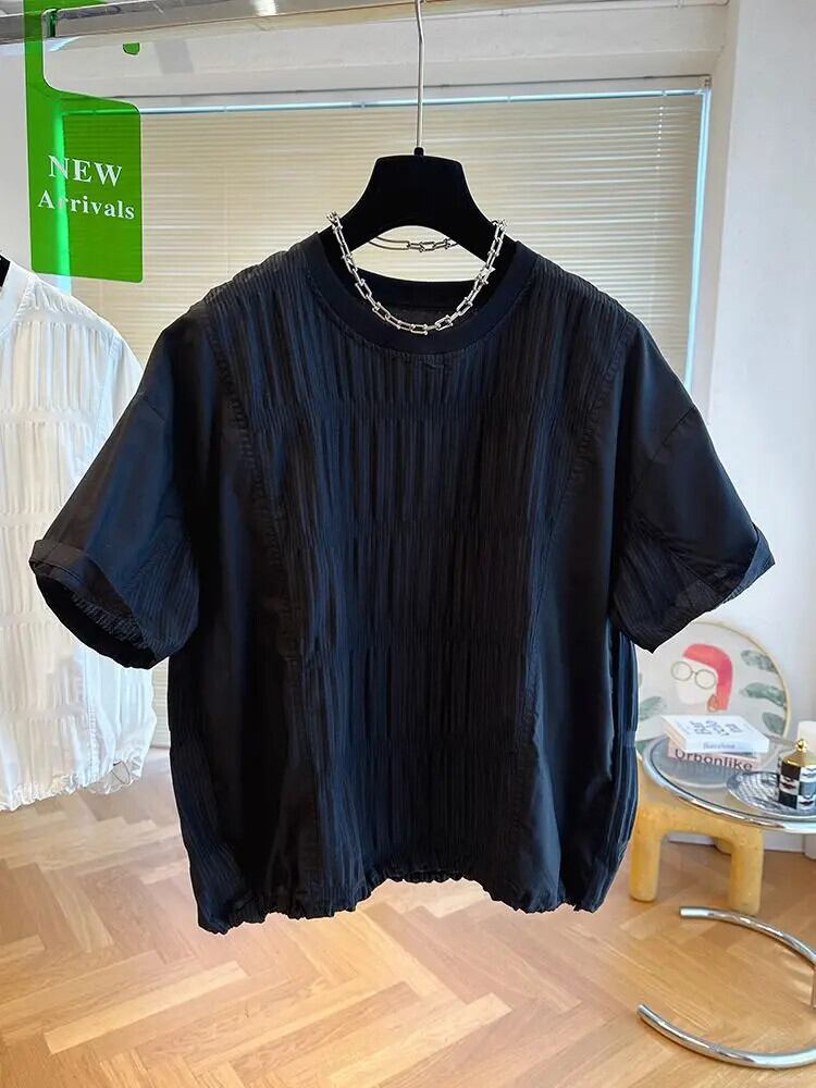 Nomikuma ひだブラウス半袖カジュアルプルオーバーシックドールシャツ 2024 春夏トップス s ショート ハーフスリーブ スプリング 春物 サマー 夏物