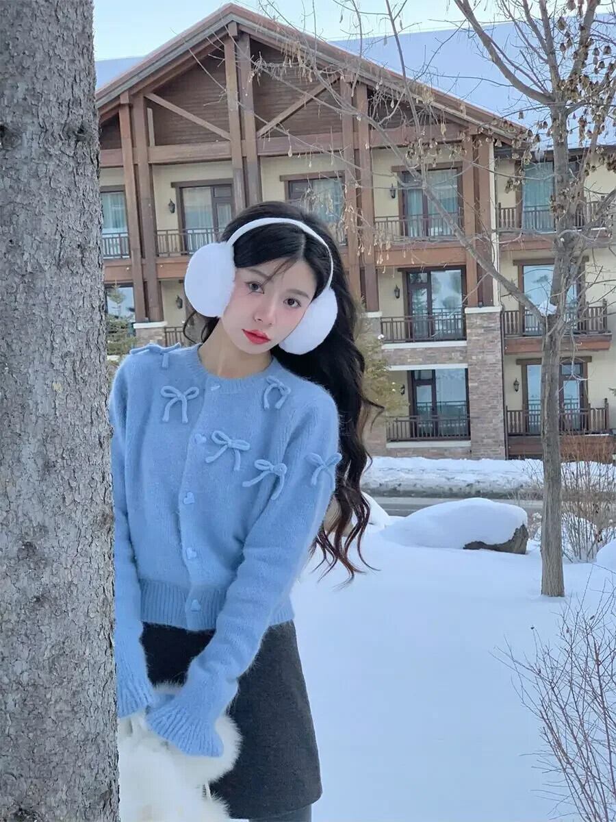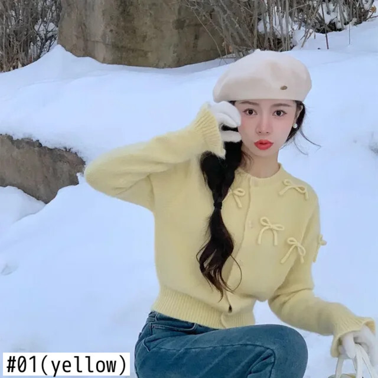 Nomikuma シック甘い弓セーター春秋ニットトップス 2024 スタイルニットカーディガン リボン 大人ガーリー スウィート キュート カジュアル スプリング 春物 オータム 秋物