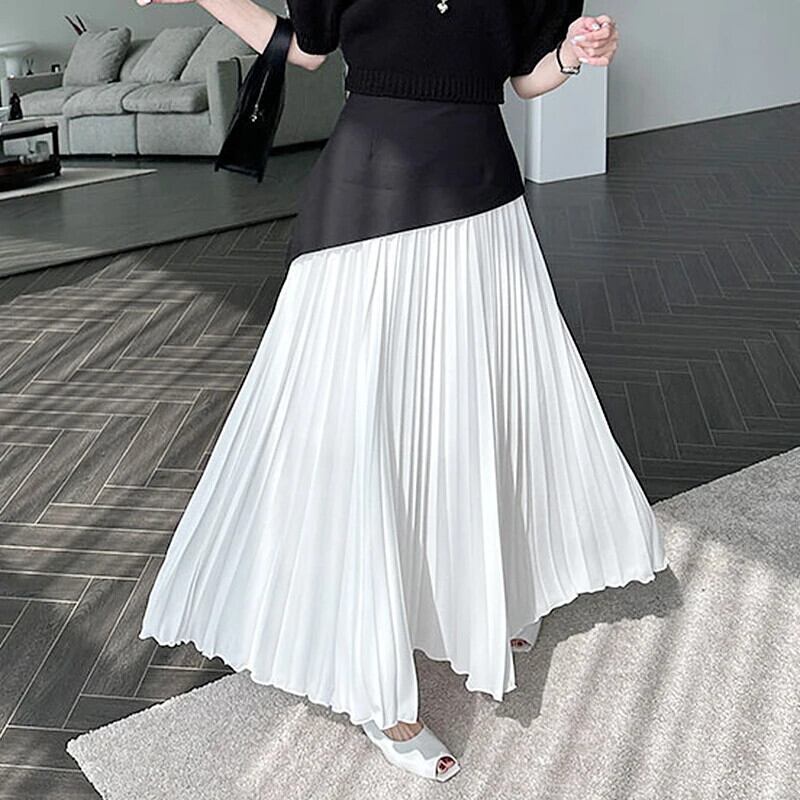 Nomikuma ヒットカラーパッチワークウエストロングスカート因果 A ライン P;eated スカート Faldas デ Aライン