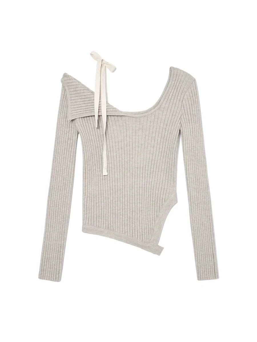 Nomikuma ストラップレス不規則レースアップオフショルダースパイシーガール底ニットセータートップス秋冬ニット オータム 秋物 ウィンター 冬物