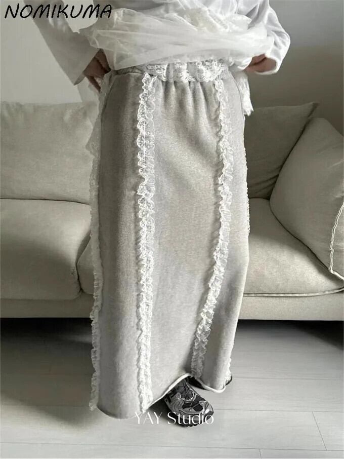 Nomikuma レースパッチワークストレートスカートスパイシーガール因果ロング Y2k スカート 2024 春ボトムス Faldas デ スプリング 春物