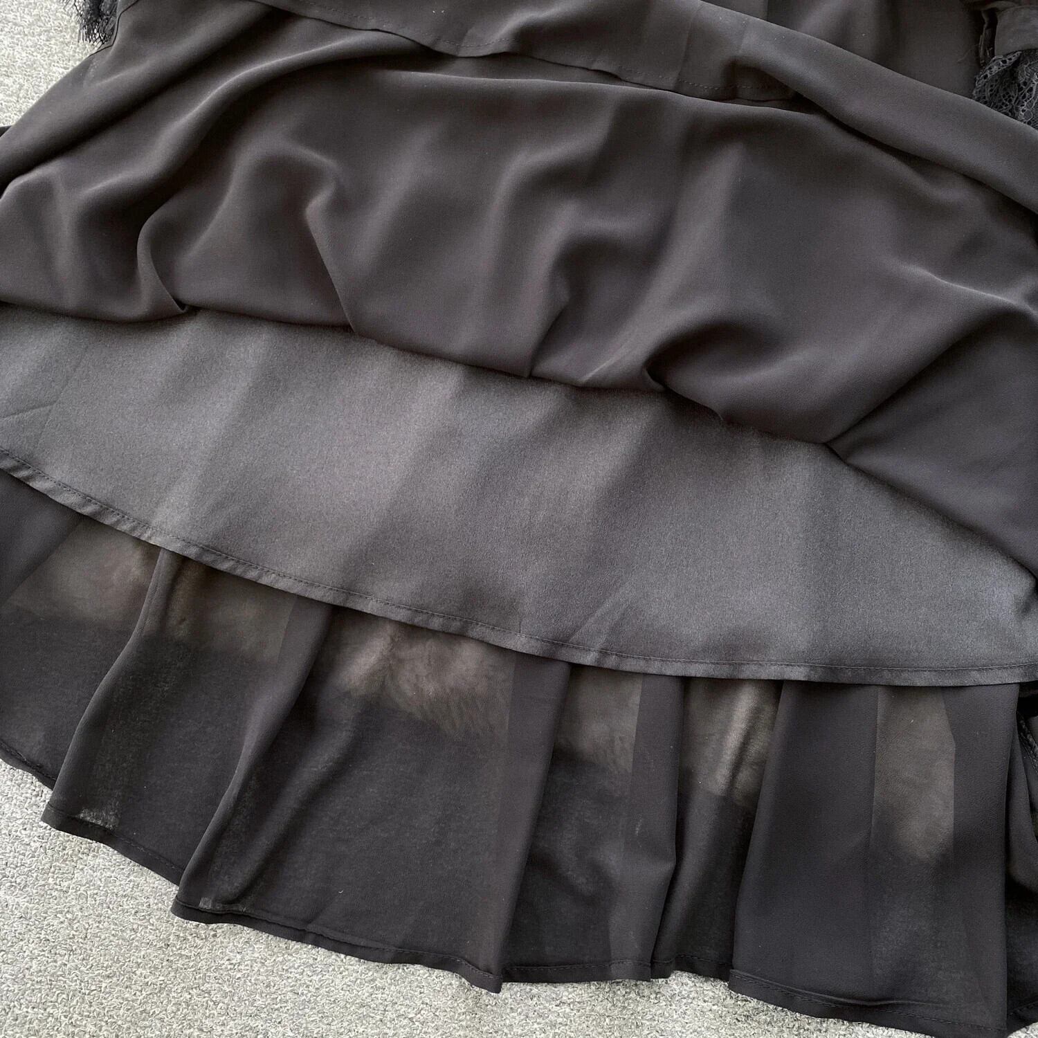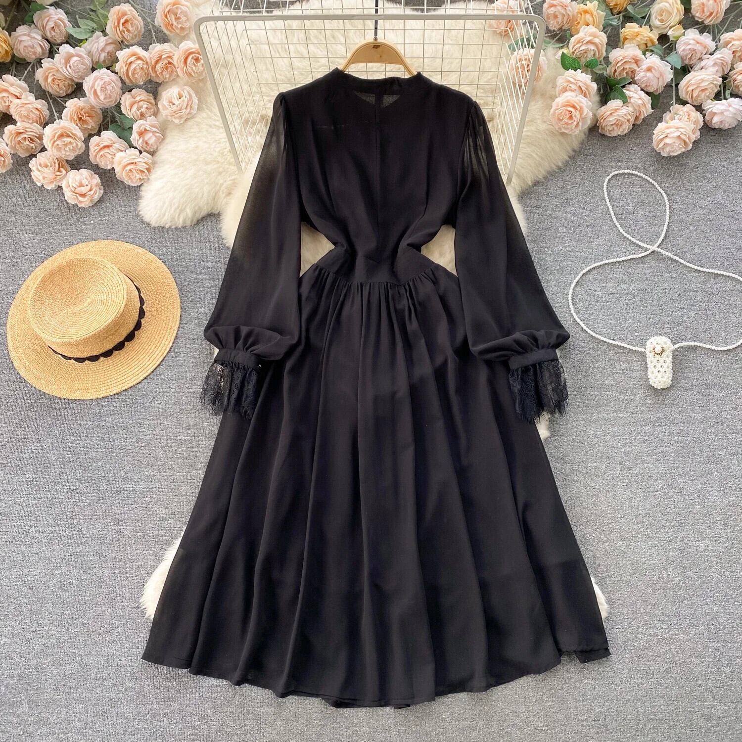 Nomikuma ドレス 2024 春甘いレースフリルパッチワークパフスリーブウエスト因果 A ラインロング Vestidos デ 大人ガーリー スウィート キュート カジュアル スプリング 春物 Aライン