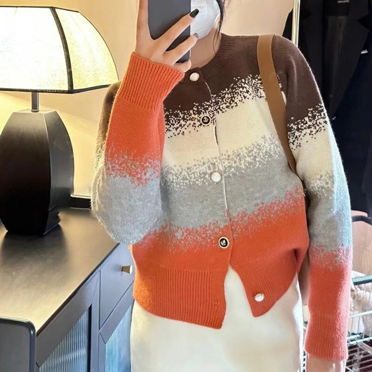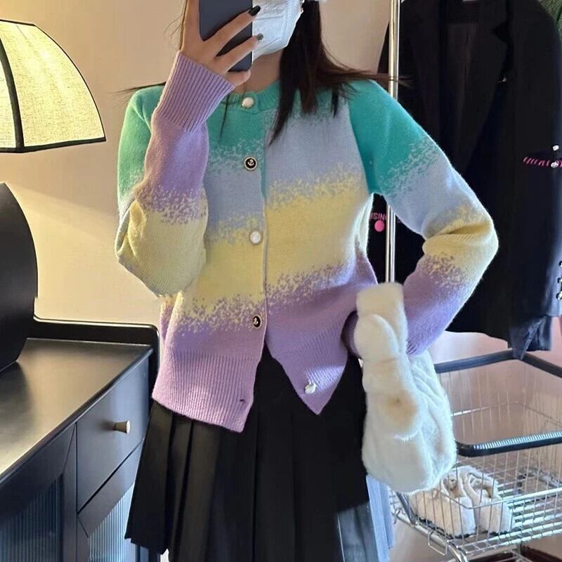 Nomikuma 秋レインボーグラデーションカラーニットカリダーン長袖 O ネックセーターコート ロング オータム 秋物 Oネック