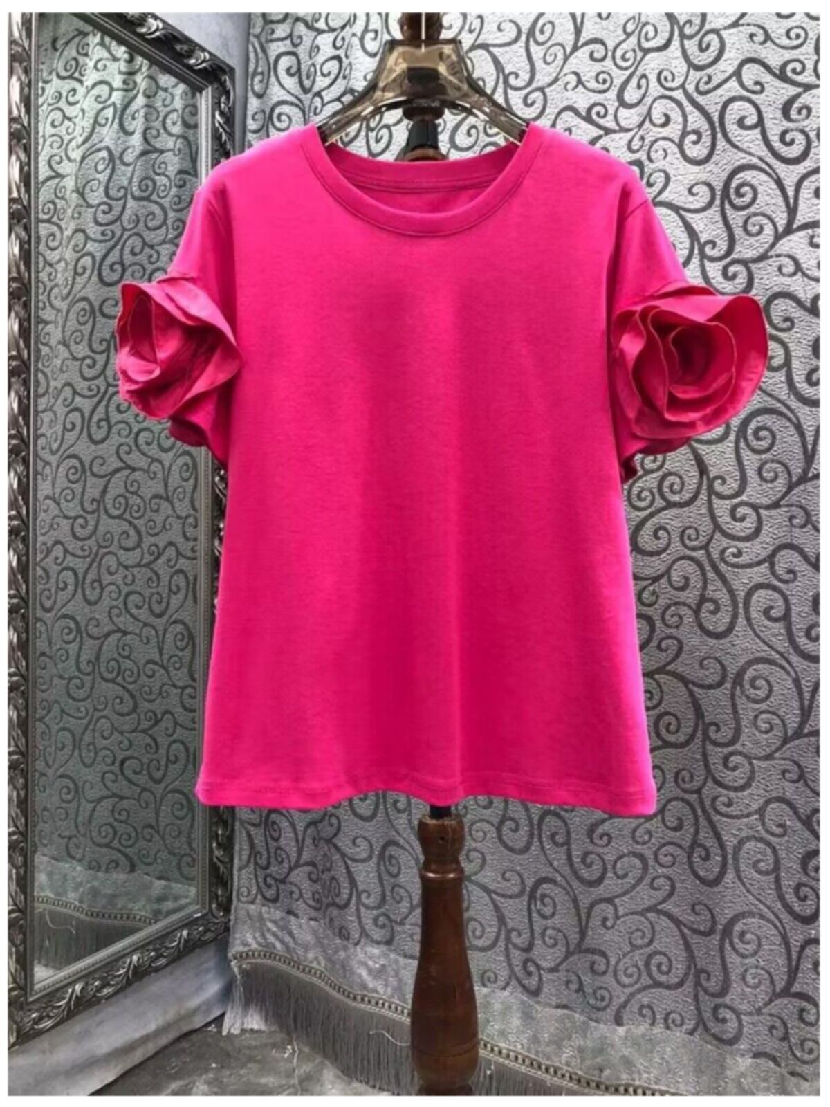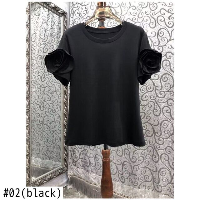 Nomikuma フレンチ 3D フラワーラウンドネック半袖 Tシャツ 2024 春夏ニッチガールズトップグラフィック T シャツ ショート ハーフスリーブ スプリング 春物 サマー 夏物 Oネック フラワーデザイン