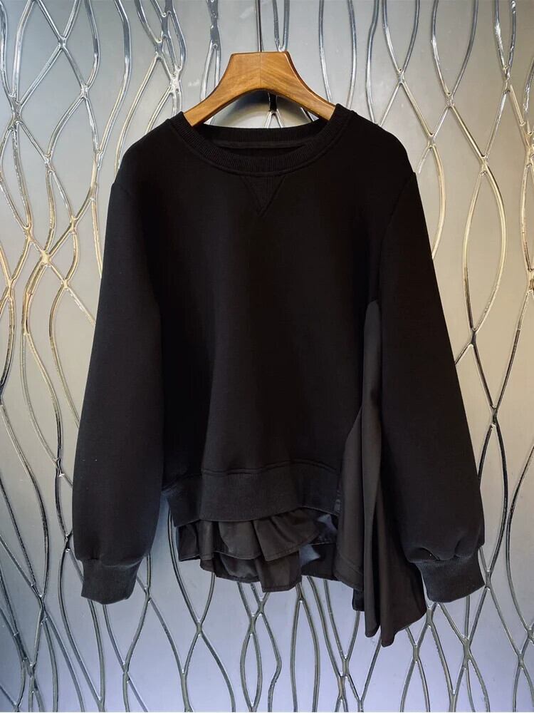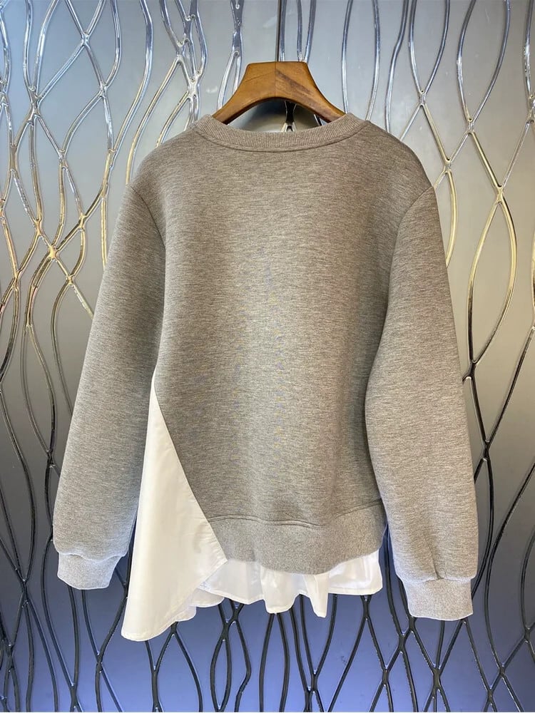 Nomikuma 不規則フェイクツーピースパッチワークコントラストカラーパーカーレディース秋冬ニッチカジュアルトップ オータム 秋物 ウィンター 冬物