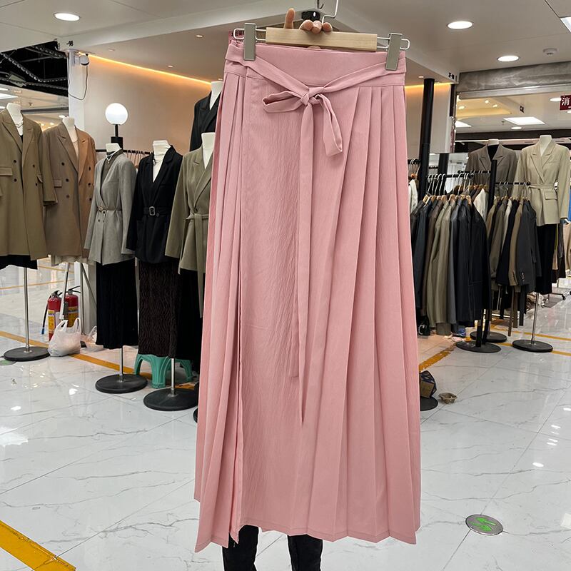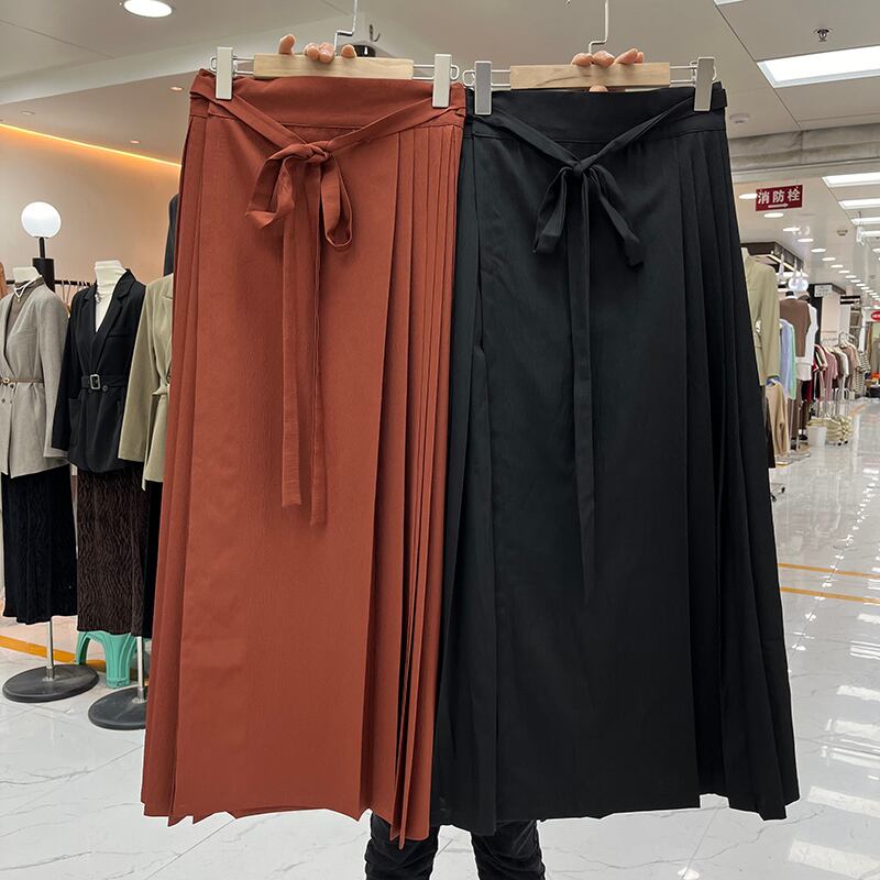Nomikuma 中国風中国風 A ラインスカート春 2024 レースアップウエストプリーツハーフレングススカート スプリング 春物 Aライン