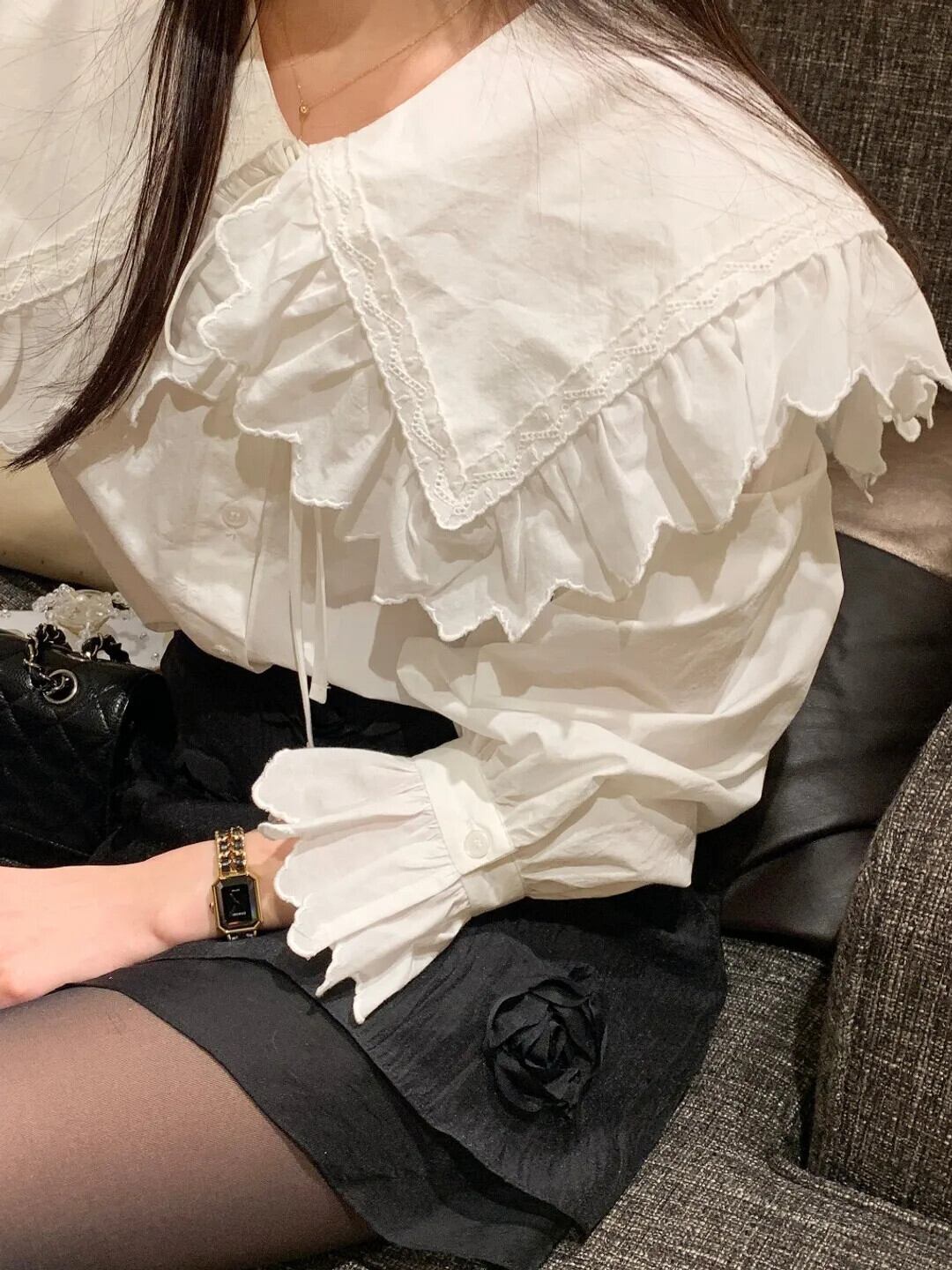 Nomikuma シック レース パッチワーク ピーターパンカラー パフ スリーブ シャツ レディース 2024 トップス De