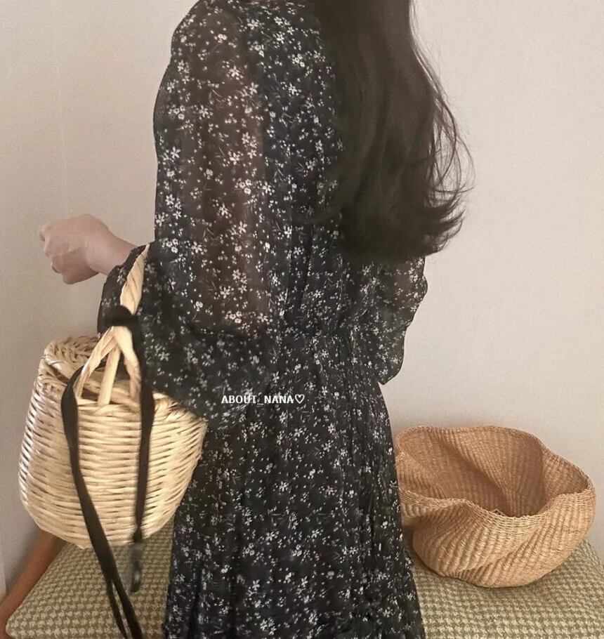 Nomikuma Instagram 春フレンチ V ネッククロスウエスト痩身ドレスワンピースシフォン花柄ドレス スプリング 春物 Vネック