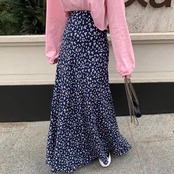Nomikuma シック春花ウエスト多彩カラーコントラストラップヒップスカートハーフロングスカート スプリング 春物 フラワーデザイン