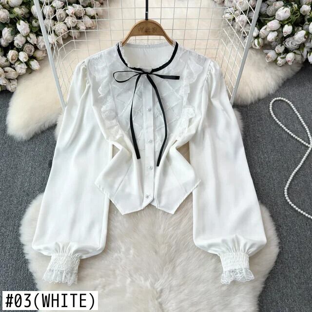 Nomikuma シャツ レディース フランス宮殿風レトロレース立ちネック長袖春秋ショートトップブラウス ロング スプリング 春物 オータム 秋物