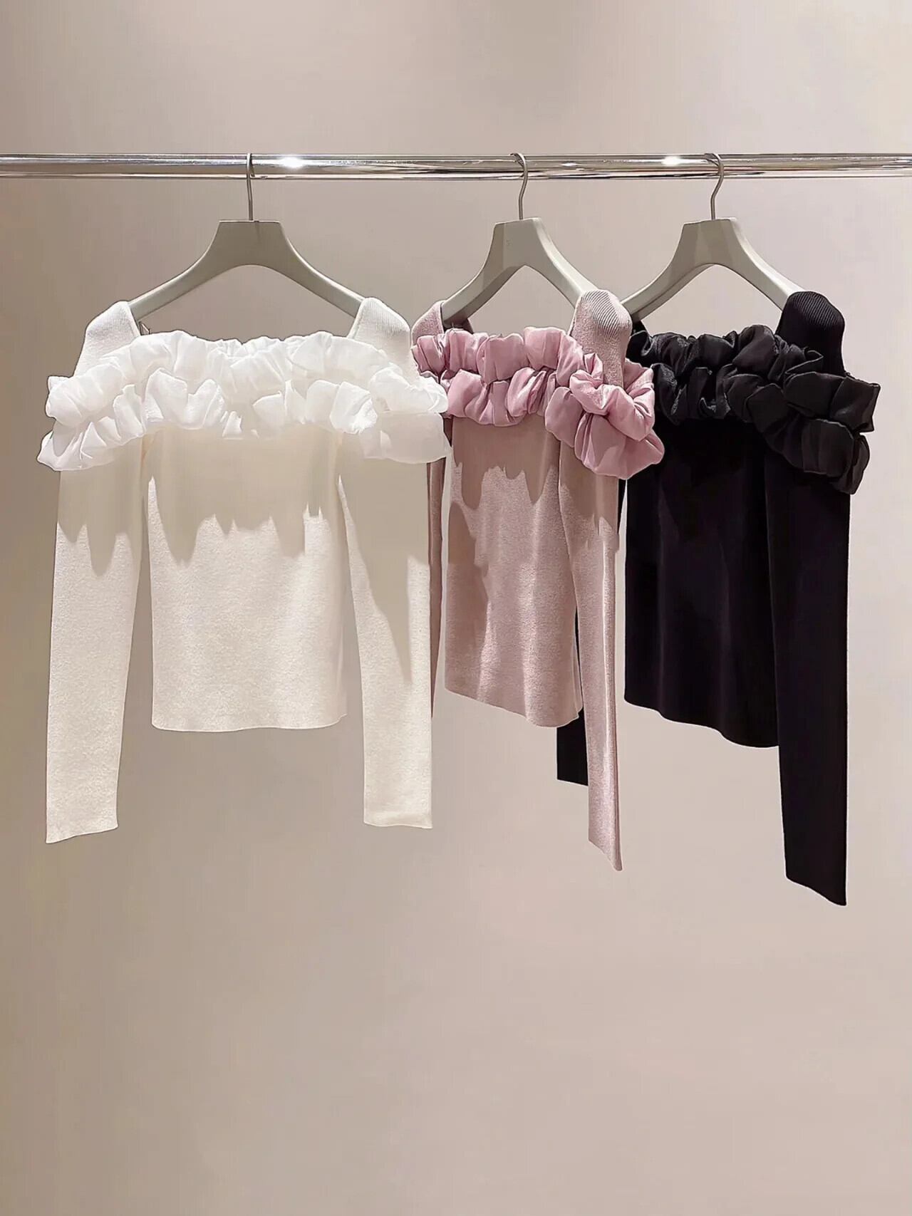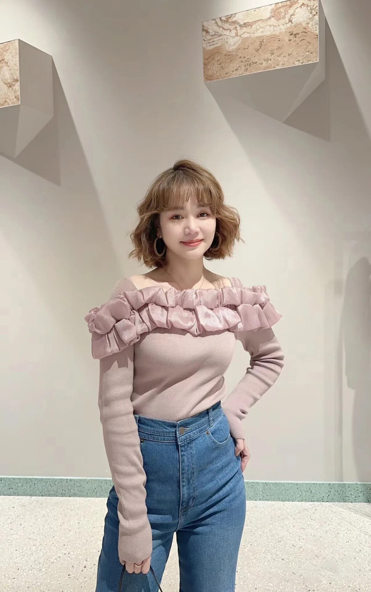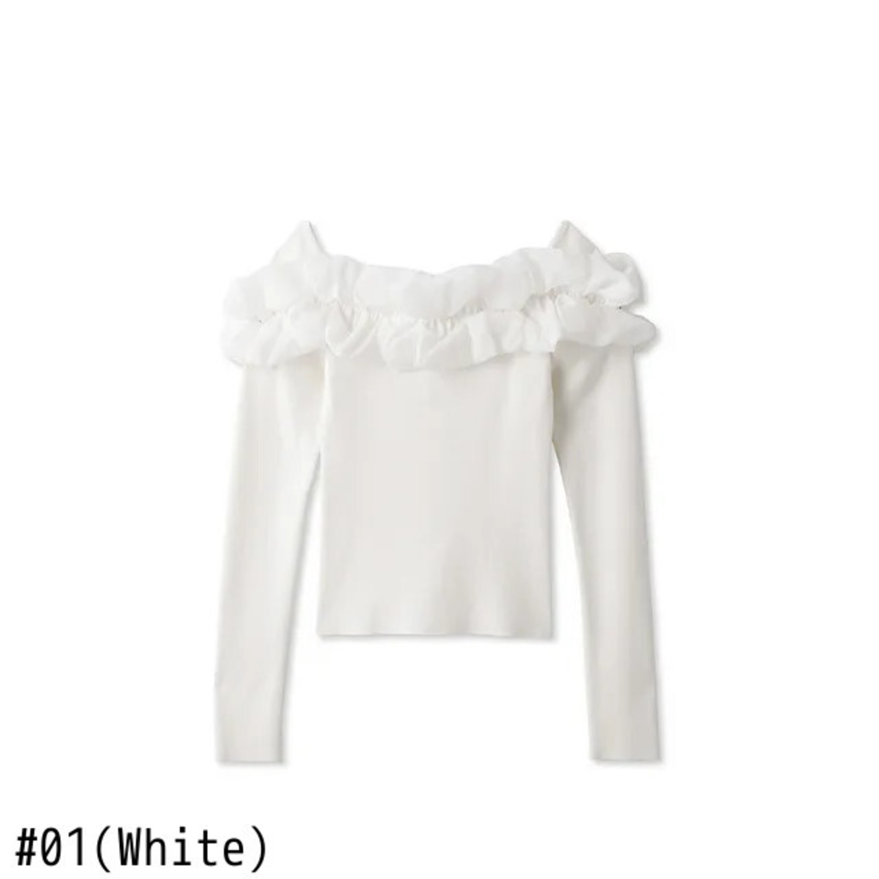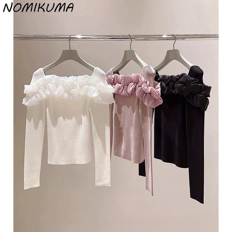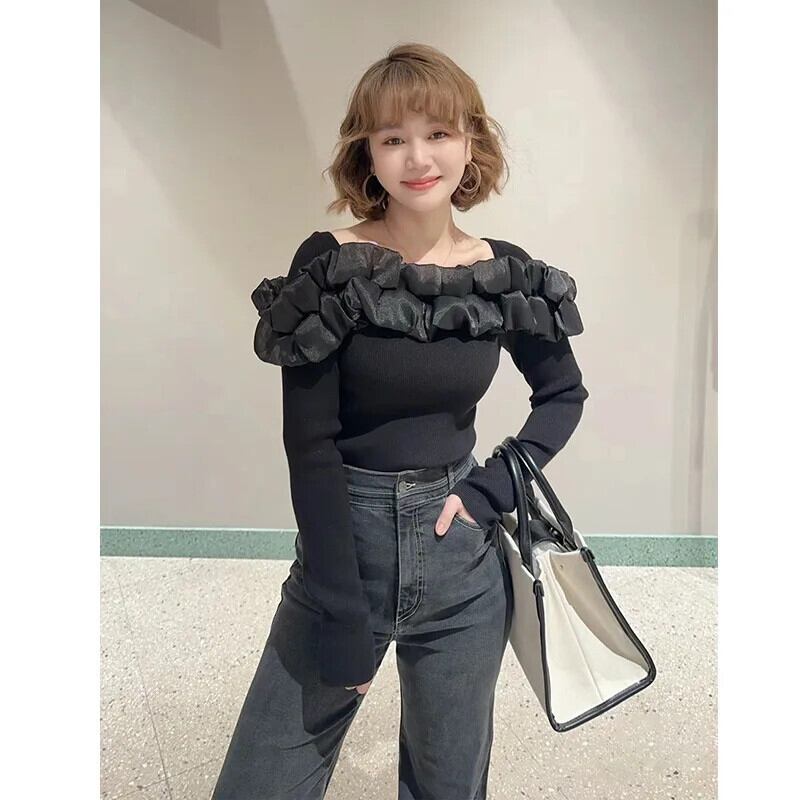 Nomikuma ese 2024 春夏甘いオフショルダーセクシーストラップレス蓮葉エッジニットトップス 大人ガーリー スウィート キュート カジュアル スプリング 春物 サマー 夏物