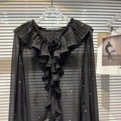 Nomikuma 2024 春シック ダイヤモンド ロータス エッジ V ネック スイート シフォン 長袖シャツ レディース ロング 大人ガーリー スウィート キュート カジュアル スプリング 春物 Vネック