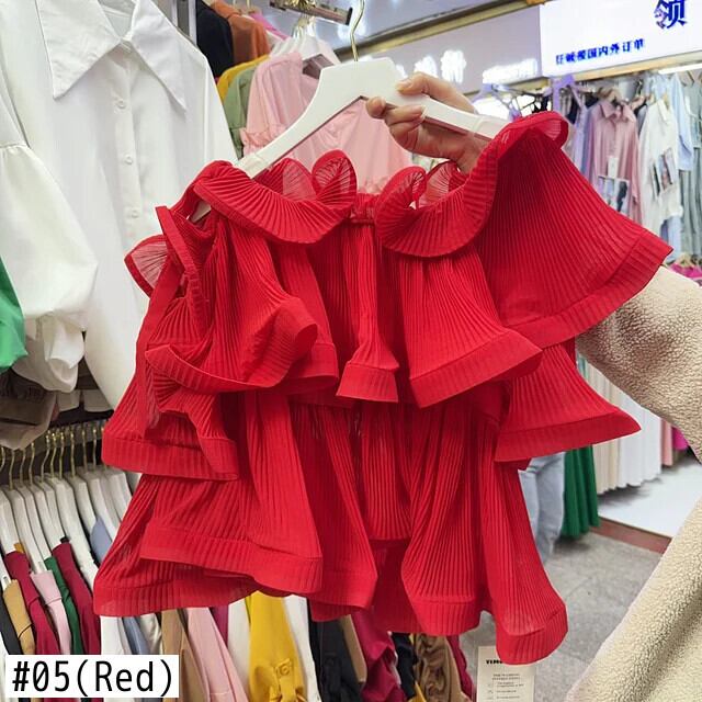 Nomikuma レイヤードフリルエッジフレアスリーブシフォンシャツ INS ニッチカジュアルブラウストップデ レッド