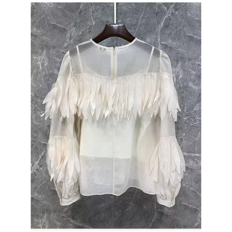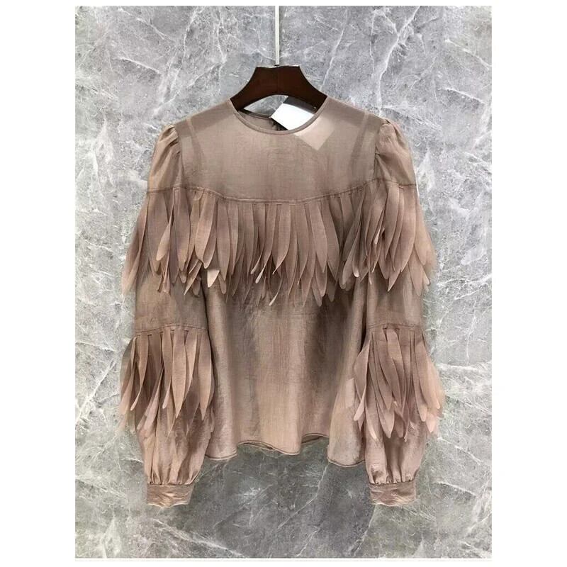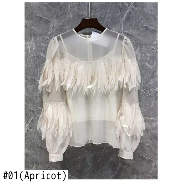 Nomikuma フレンチ テル ペタル パッチワーク ランタン スリーブ シャツ レディース 2024 春 ニッチ トップ ランタンスリーブ スプリング 春物