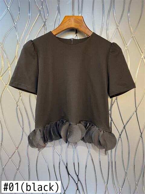 Nomikuma ニッチ裾花びらパッチワークショート Tシャツ 2024 夏スイートシックソリッドカラーガール Tシャツトップス 大人ガーリー スウィート キュート カジュアル サマー 夏物