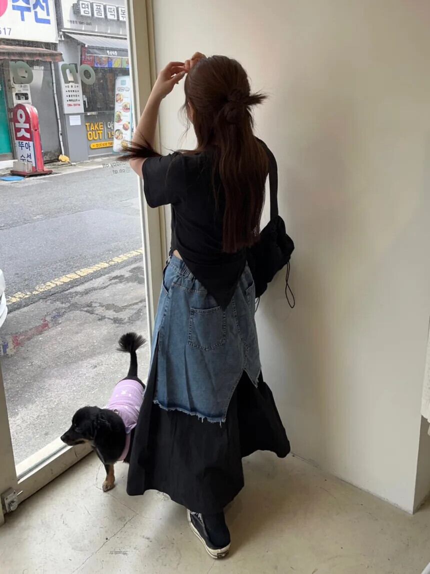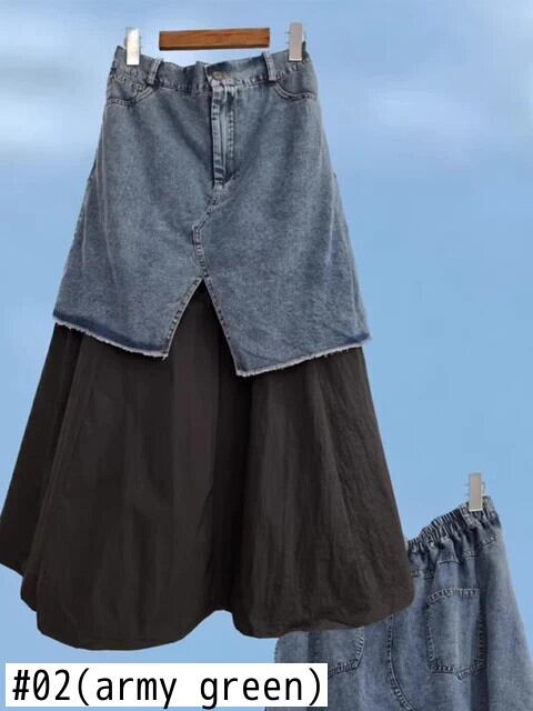Nomikuma シック春ニッチウエストウエスト多彩痩身ポケットパッチワークスプリットデニムスカートハーフスカート スプリング 春物