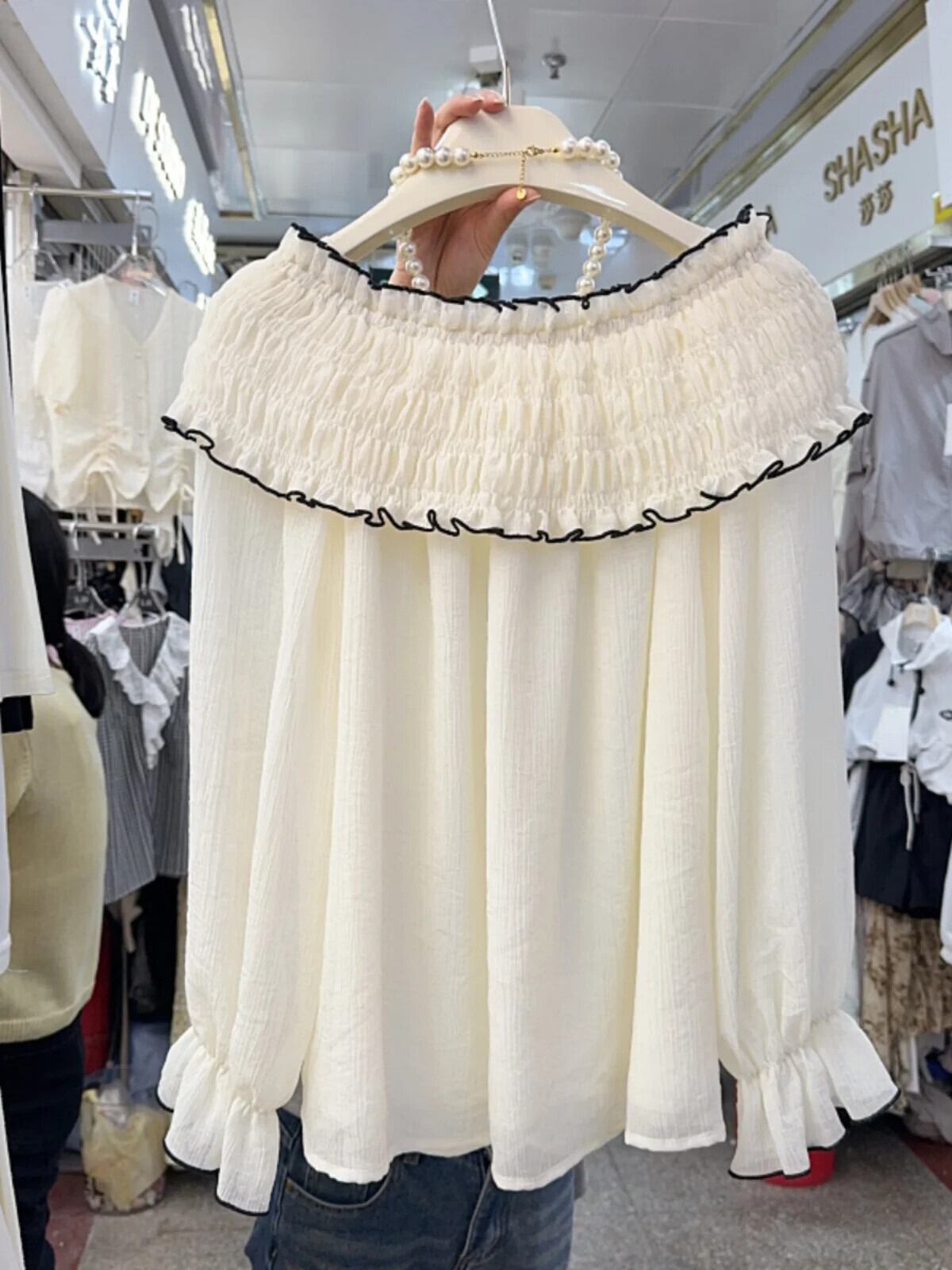 Nomikuma 春フレンチオフショルダーフレアスリーブシャツ多用途カジュアルブラウストップデモーダ 2024 ヴェラーノ スプリング 春物
