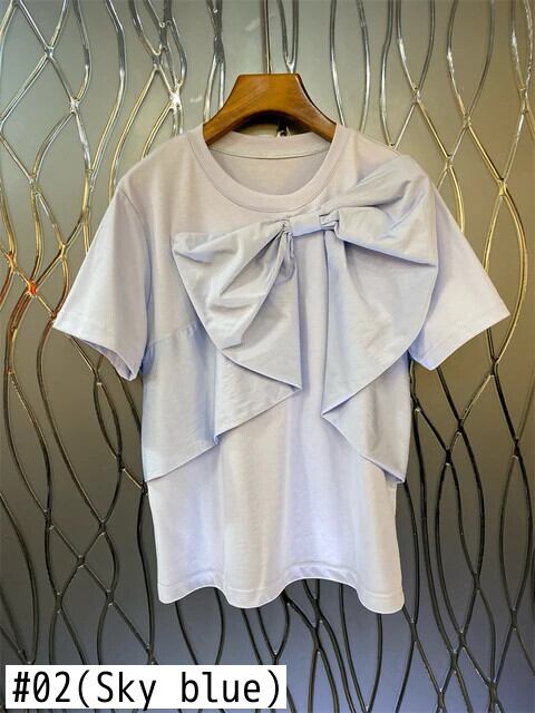 Nomikuma フレンチリボンスプライシング ラウンドネック 半袖 Tシャツ レディース 2024 春夏 ニッチトップ ショート ハーフスリーブ スプリング 春物 サマー 夏物 Oネック