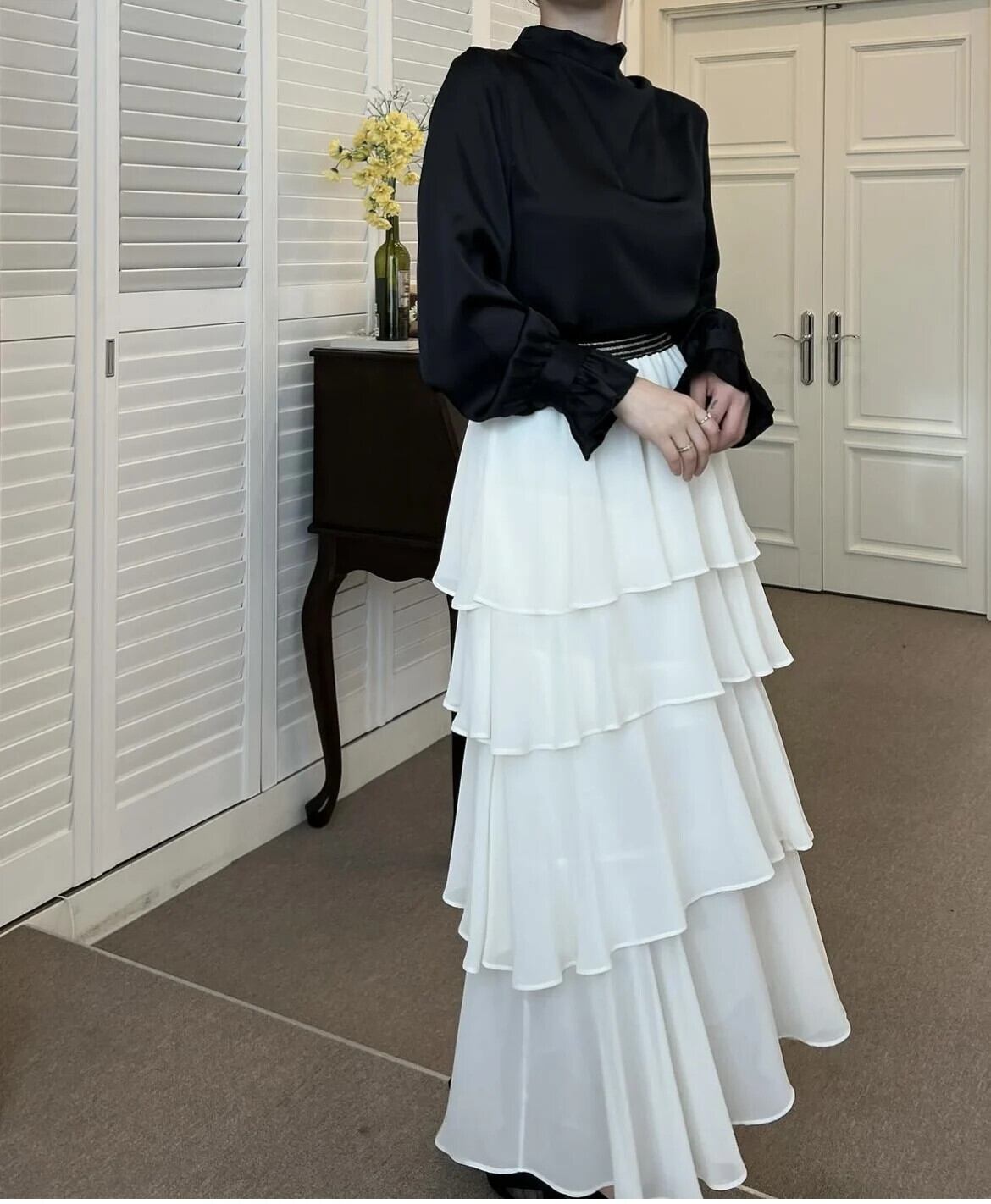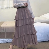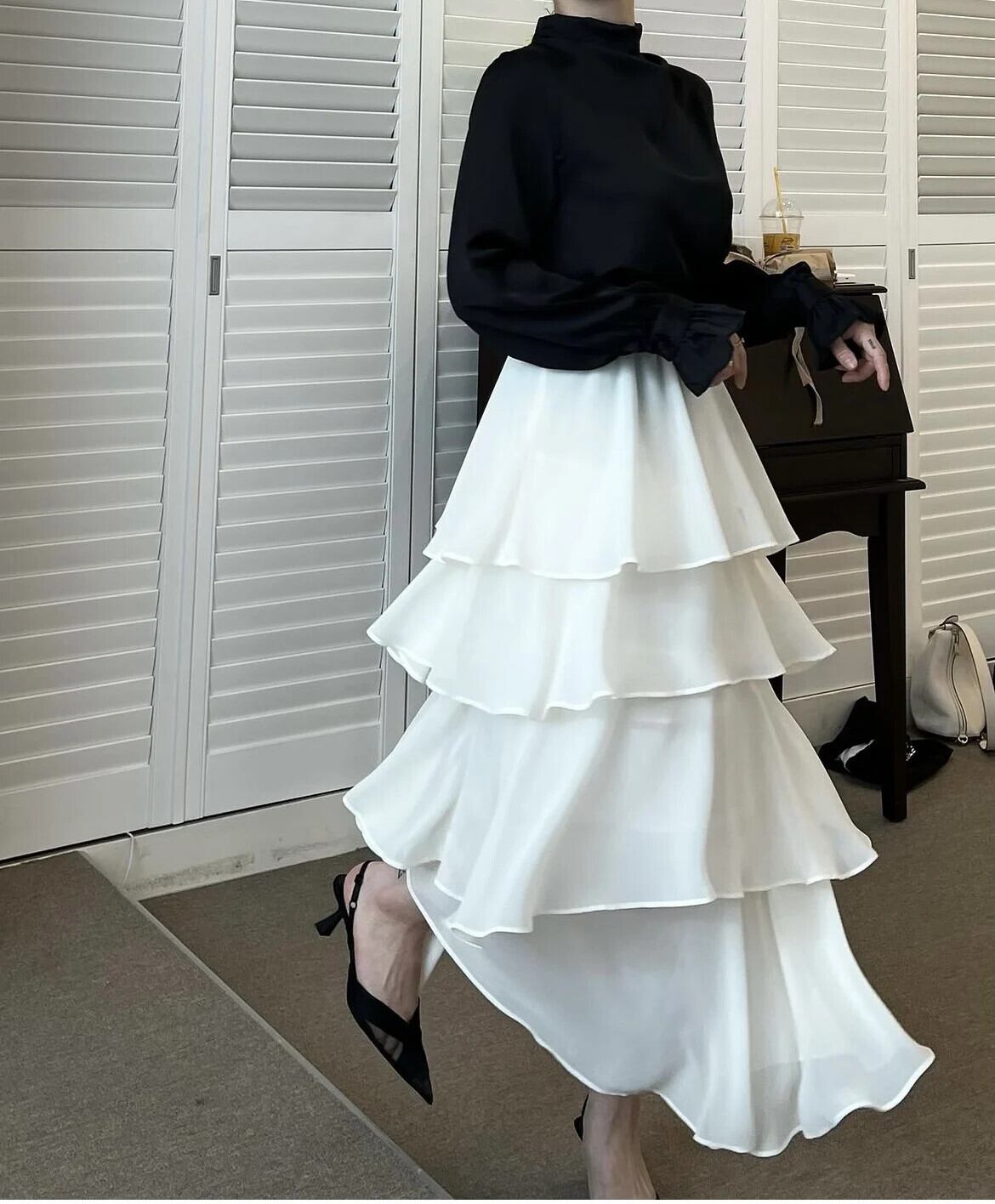 Nomikuma シック春フレンチゴムウエスト多用途スリムスプライシングレイヤードケーキスカート 5 分丈スカート レッド エラスティック 伸縮 スプリング 春物