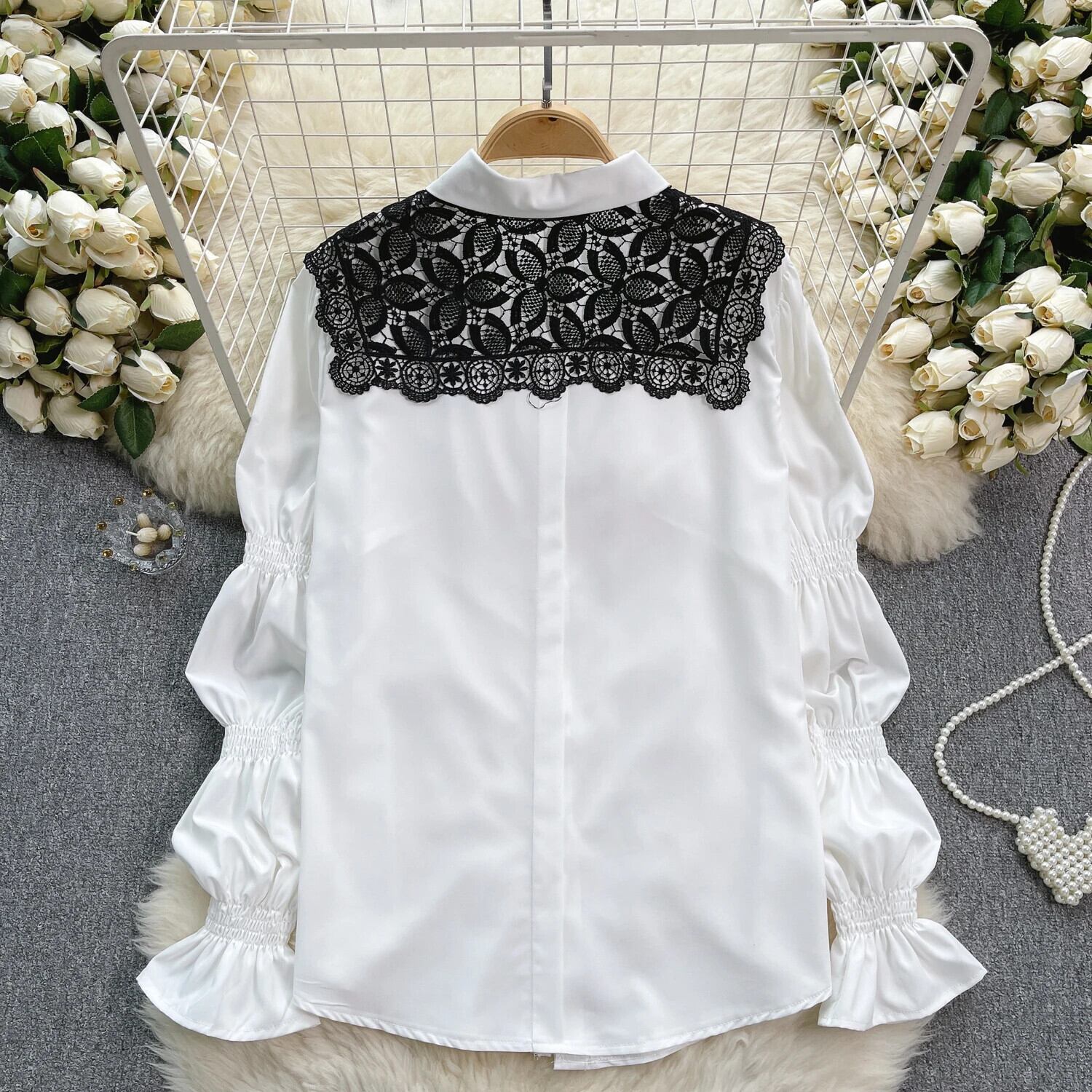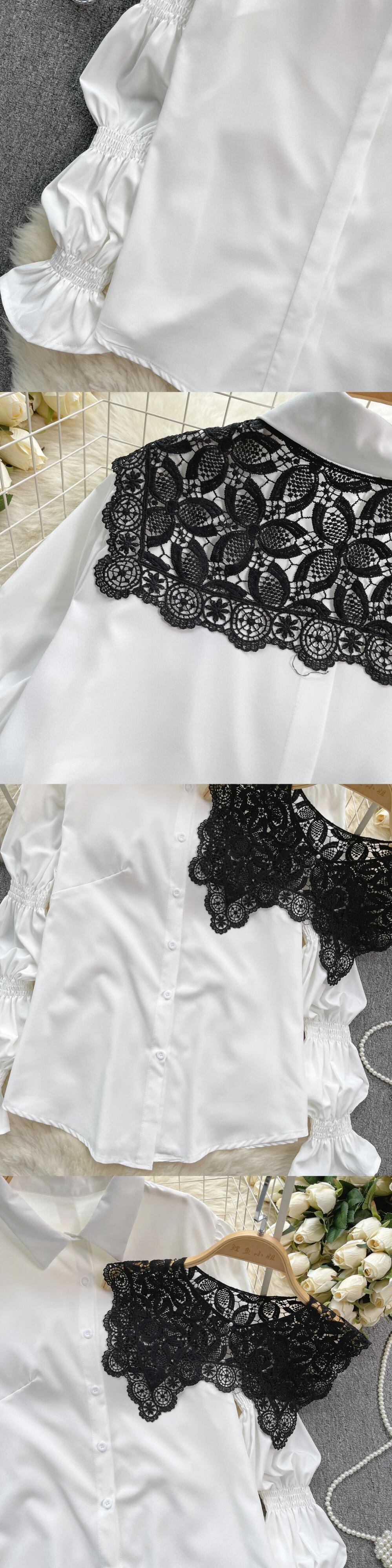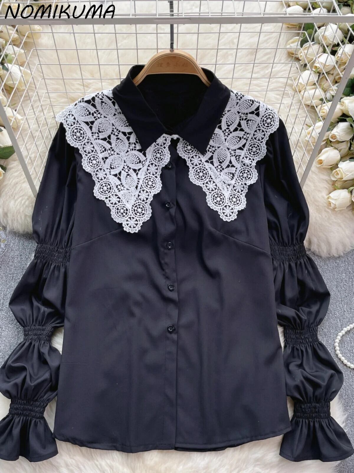 Nomikuma Style スイートレースショール+パフ長袖シャツ2点セット レディース 2024春 トップス ロング 大人ガーリー スウィート キュート カジュアル スプリング 春物