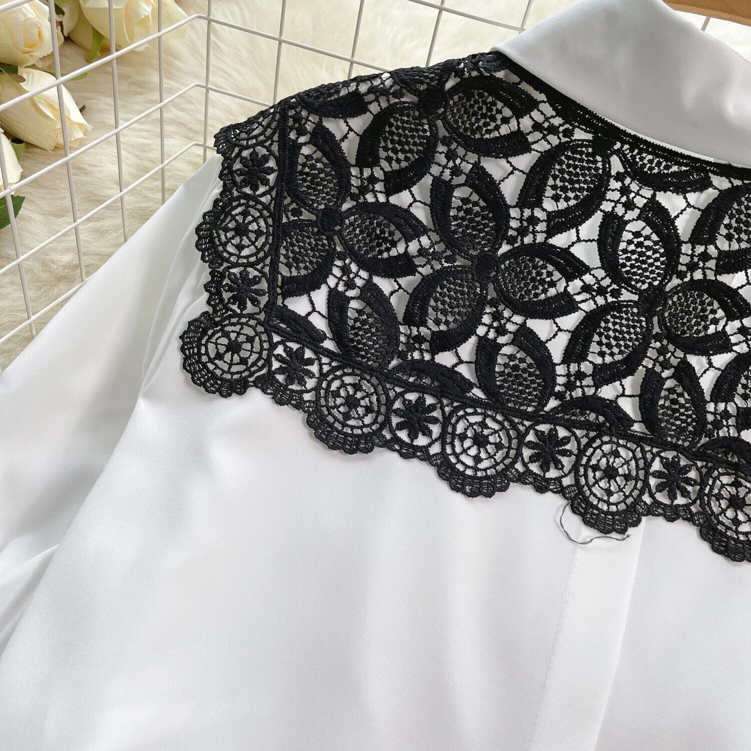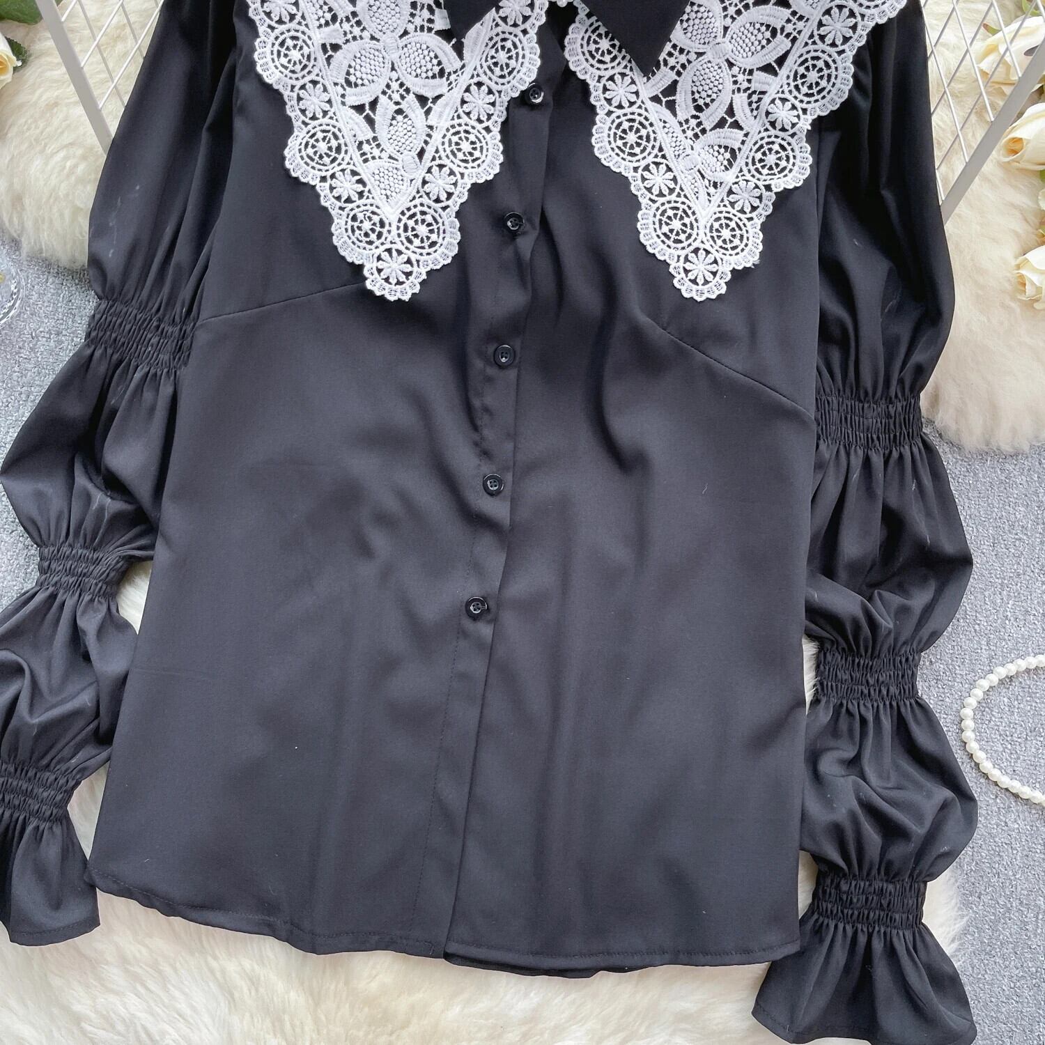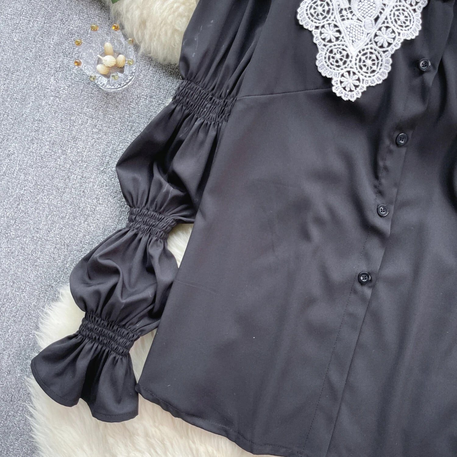 Nomikuma Style スイートレースショール+パフ長袖シャツ2点セット レディース 2024春 トップス ロング 大人ガーリー スウィート キュート カジュアル スプリング 春物