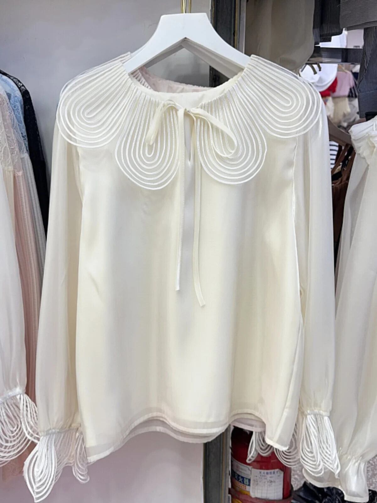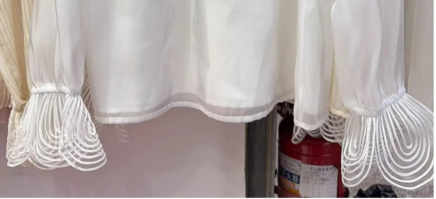 Nomikuma 2024 フレンチレトロパッチワークレースピーターパンカラーシャツ夏フレア長袖ブラウストップ ロング サマー 夏物
