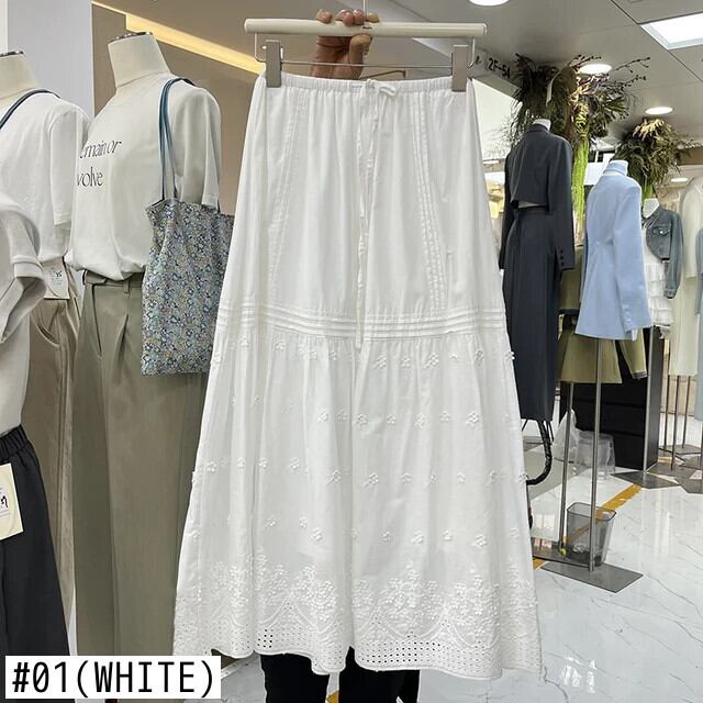 Nomikuma フレンチ 3D フラワー刺繍巾着レース A ライン傘スカートウエストロング A ラインスカート Faldas レッド Aライン フラワーデザイン