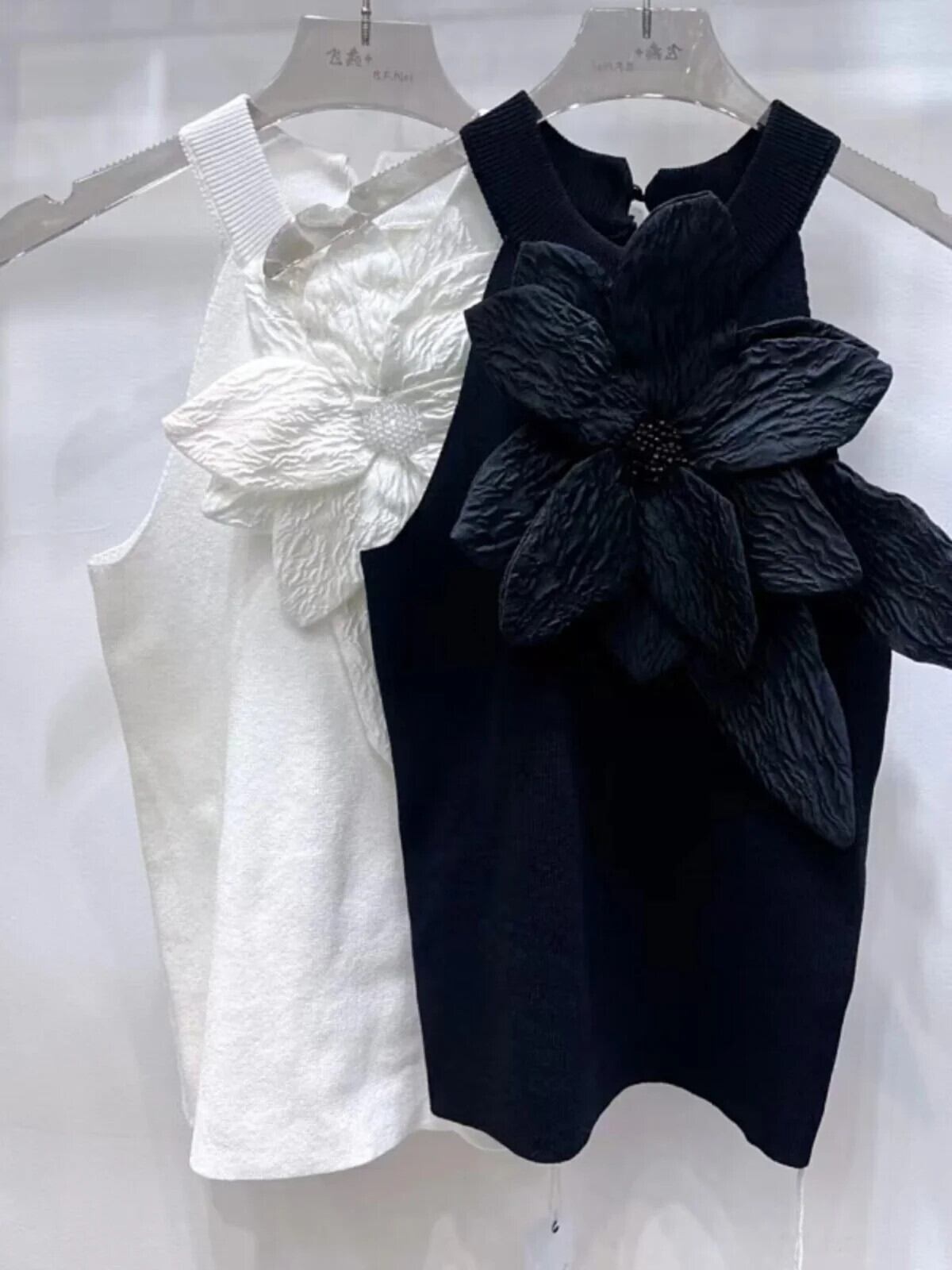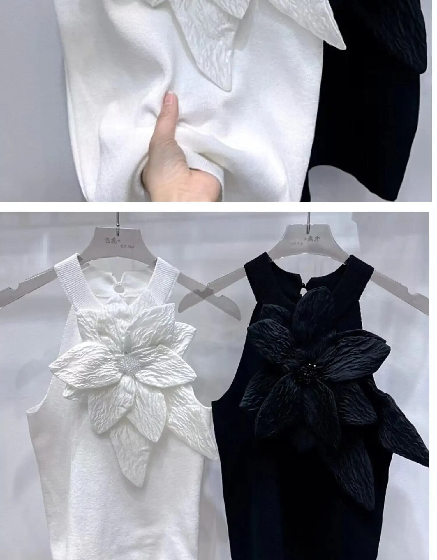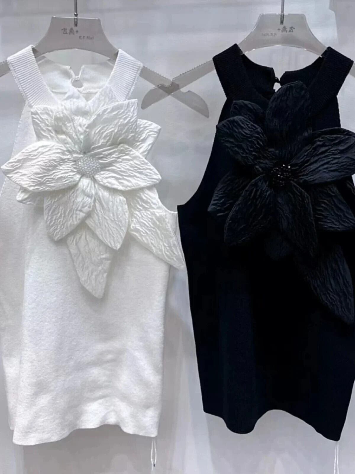 Nomikuma フレンチ立体フラワーニットハンギングネックサスペンダーベスト 2024 春夏スパイシーガールセクシー Y2k トップ スプリング 春物 サマー 夏物 フラワーデザイン