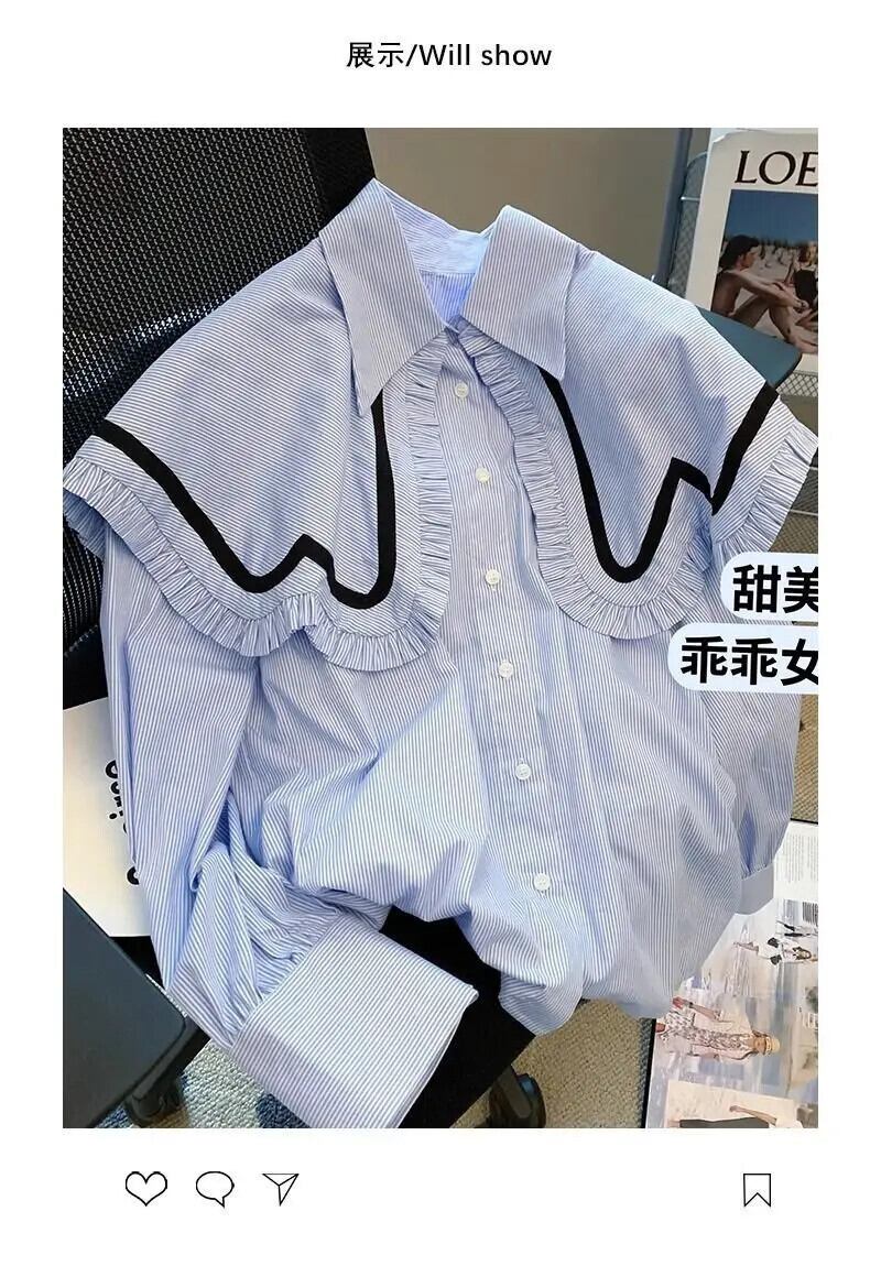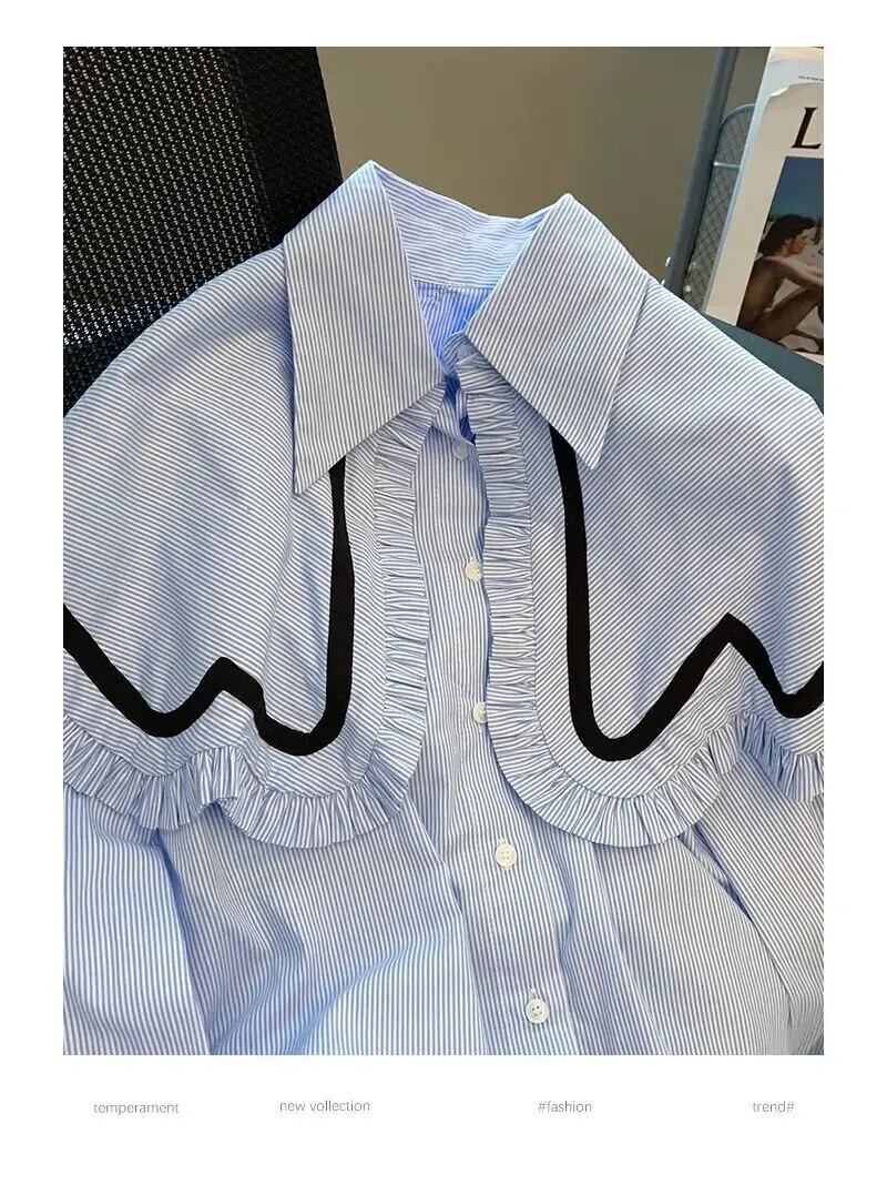Nomikuma ブルーストライプピーターパンネックシャツ春 2024 ニッチレトロパフスリーブ因果トップデ スプリング 春物