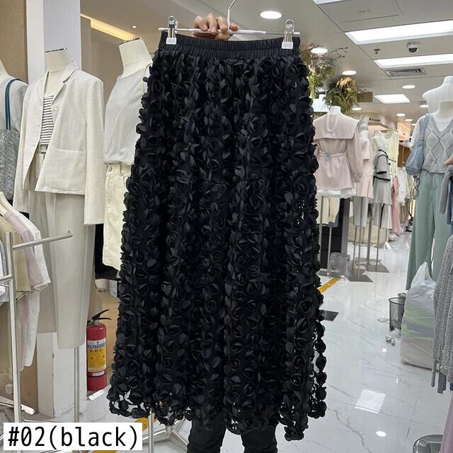 Nomikuma スイート立体お花ふわふわハーフスカート フレンチローズメッシュ ミディアム丈 大振りアンブレラスカート 大人ガーリー スウィート キュート カジュアル フラワーデザイン