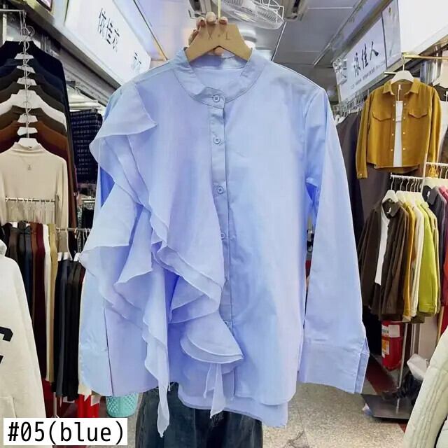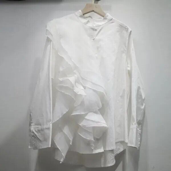 Nomikuma 2024 秋 3D フリルエッジ不規則パッチワーク長袖シャツニッチソリッドカラーブラウストップス ロング オータム 秋物
